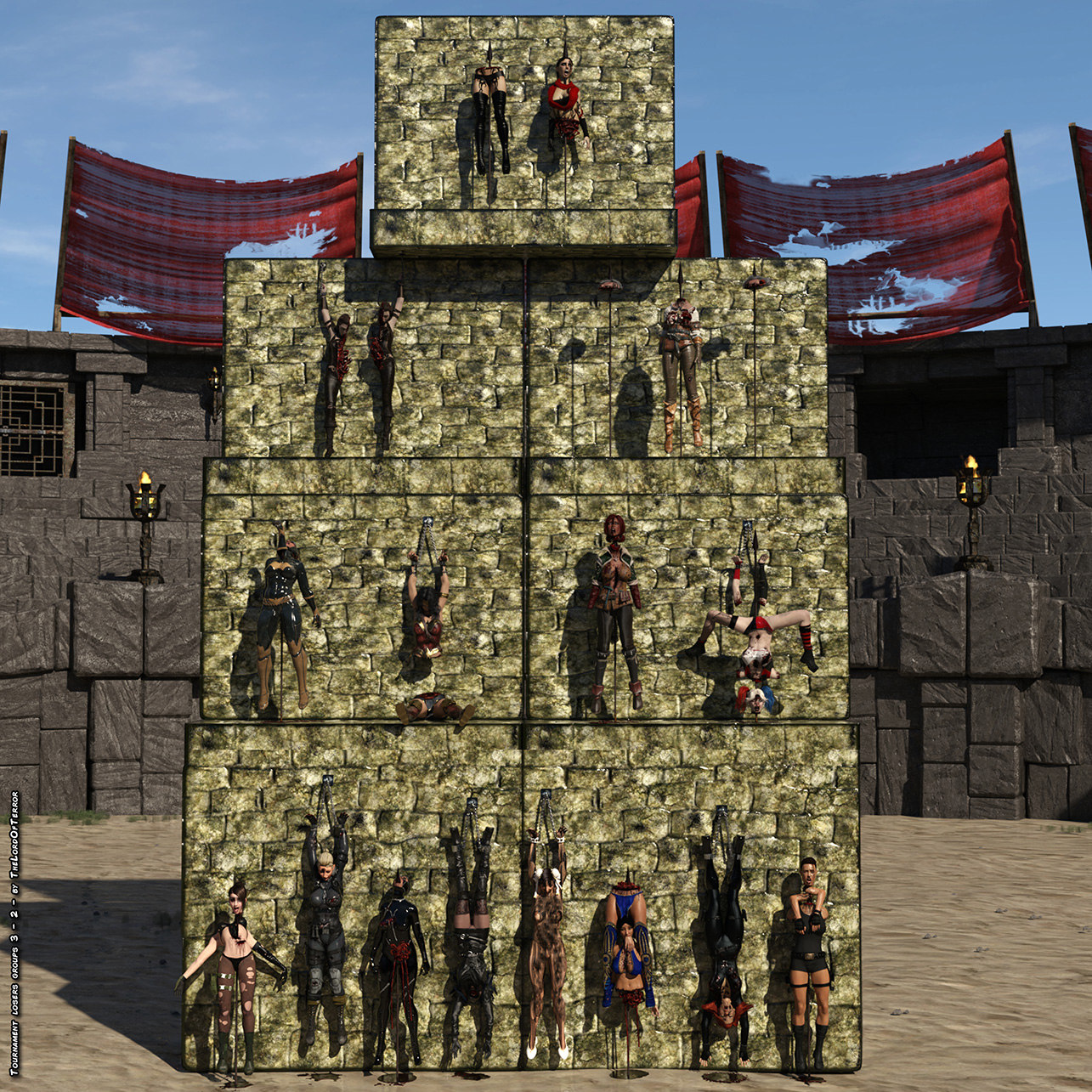 Full album of 22 pics, showing the defeated characters, singles and in groups, from different camera positions, both dressed and naked.