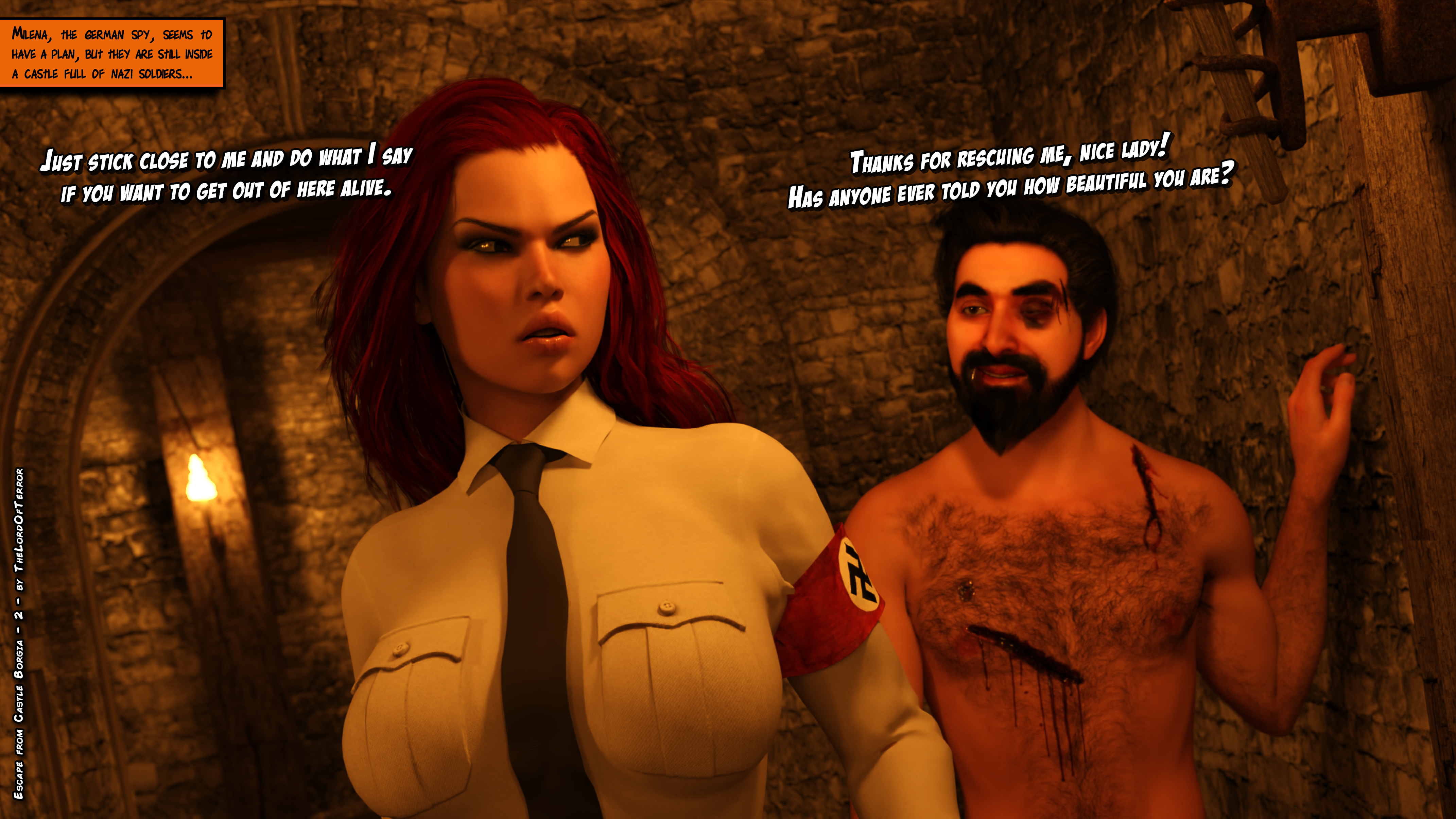 The german spy is trying to free the partisan leader from the dungeon of the castle, and they have to call the US reinforcements waiting outside… but it won’t be easy as it looks, since the castle if full of nazi forces!
