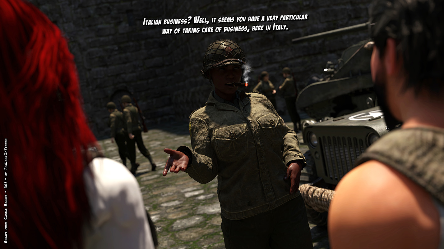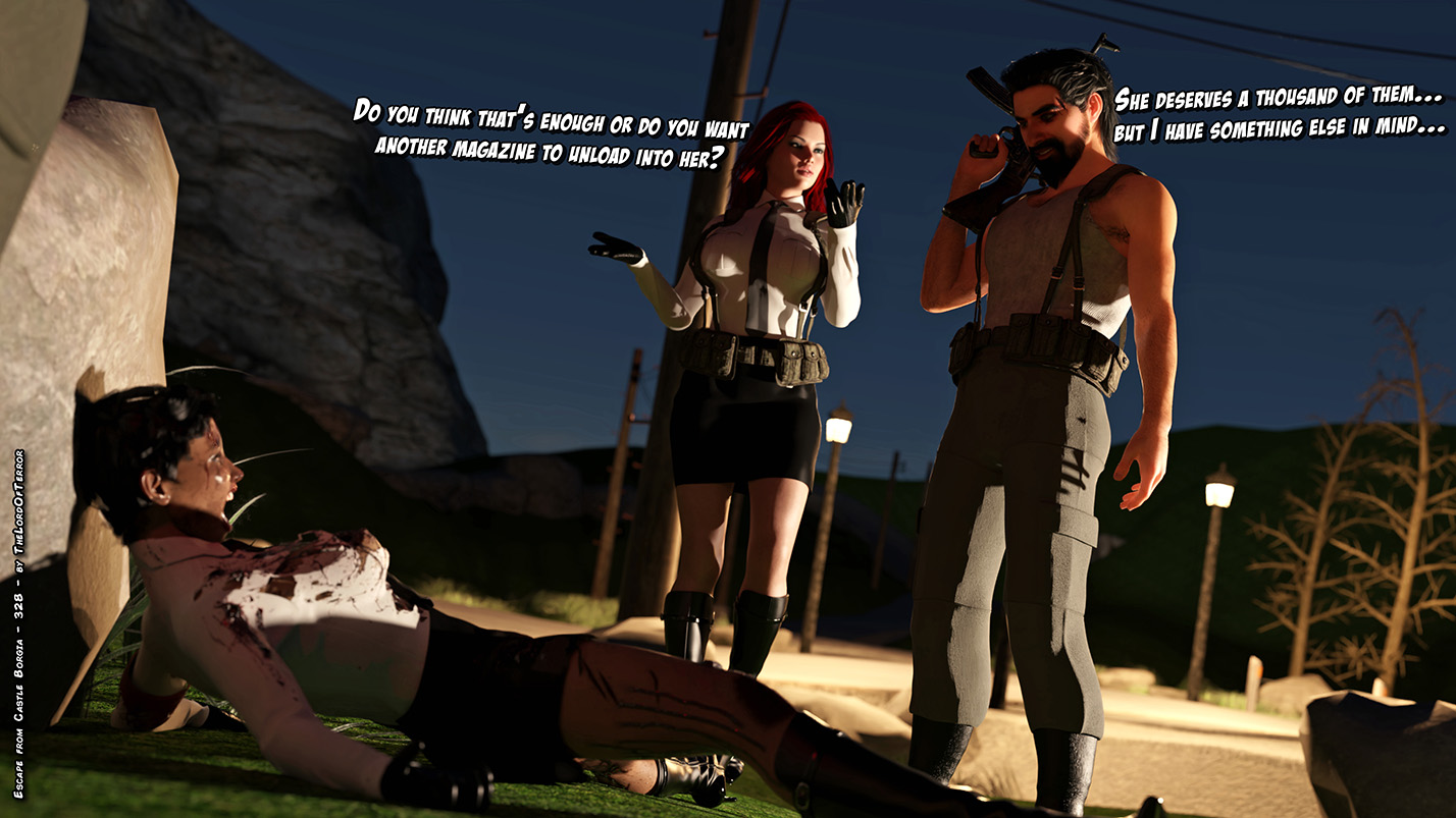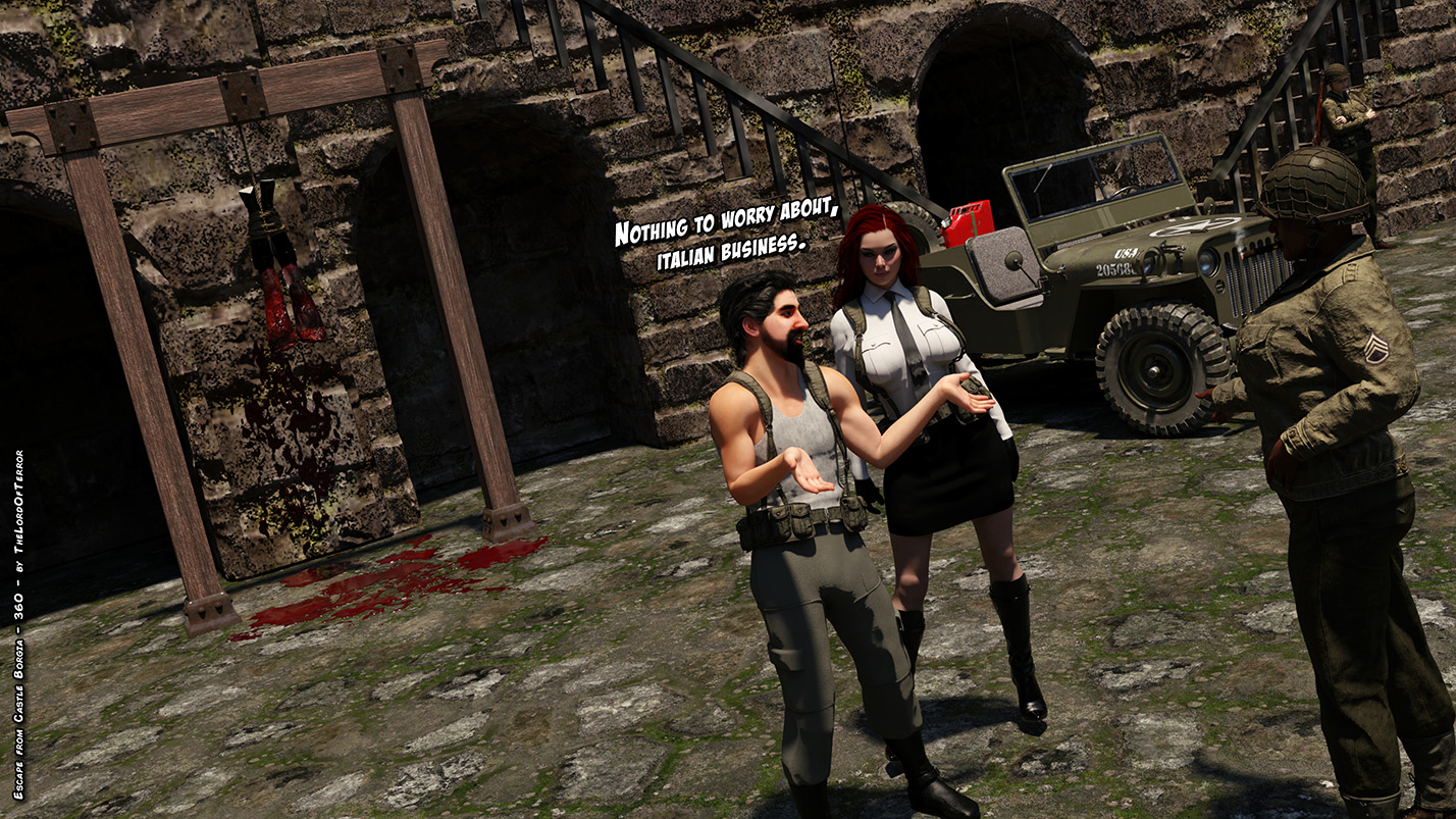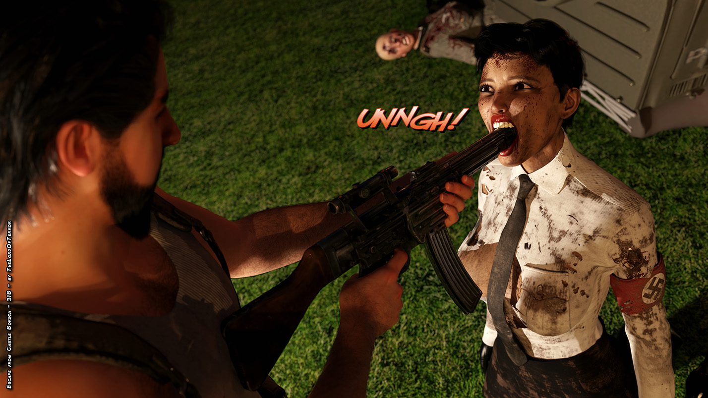 The evil nazi officer has been killed, half of vengeance is done… there’s only the italian traitor left! And she will be tortured and brutally killed. Later there will be a bodypile with all the dead nazis and traitor body will be exposed and… exploded!