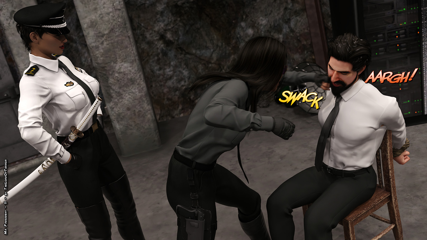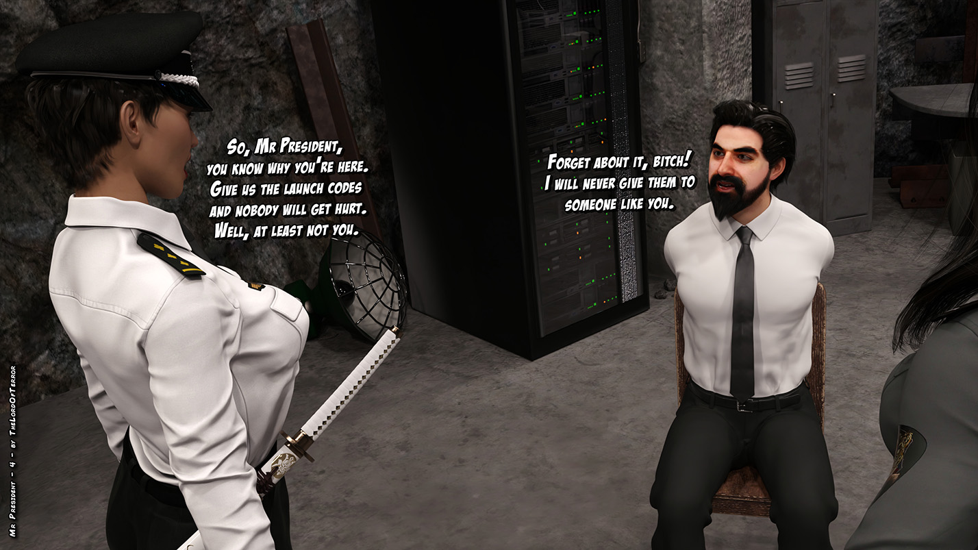 The president has been captured by a terrorist organization, and they are torturing him to get the launch codes, but he seems to be a tough guy… so they try a different kind of torture! Meanwhile, a deadly ninja kills the guards outside the base…