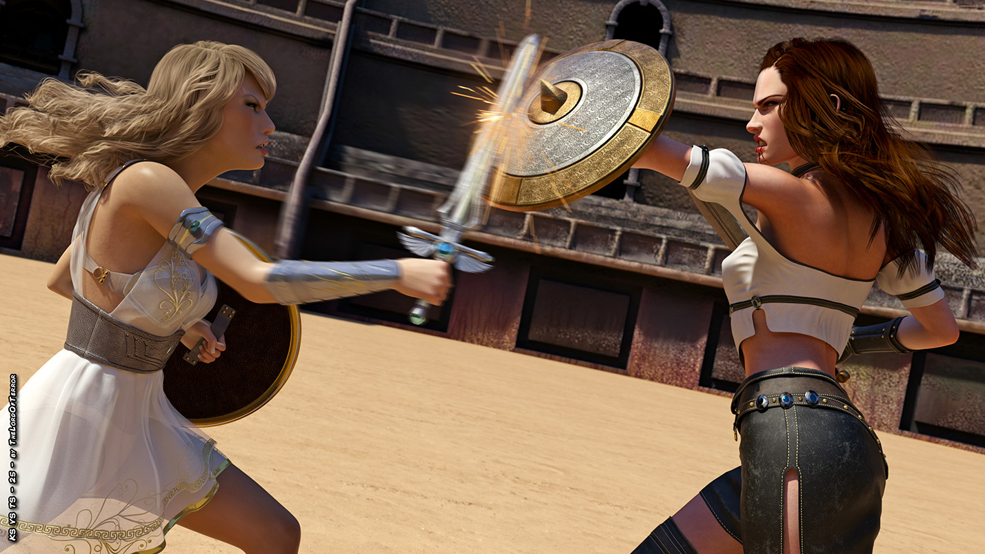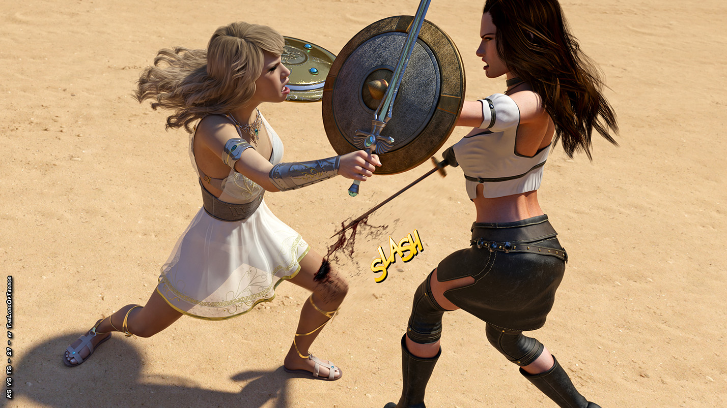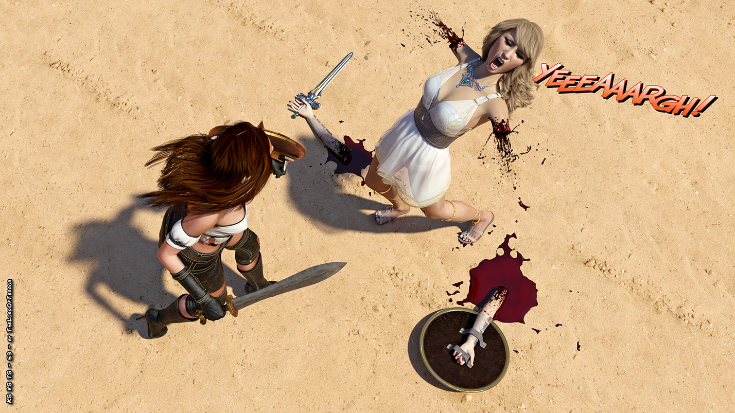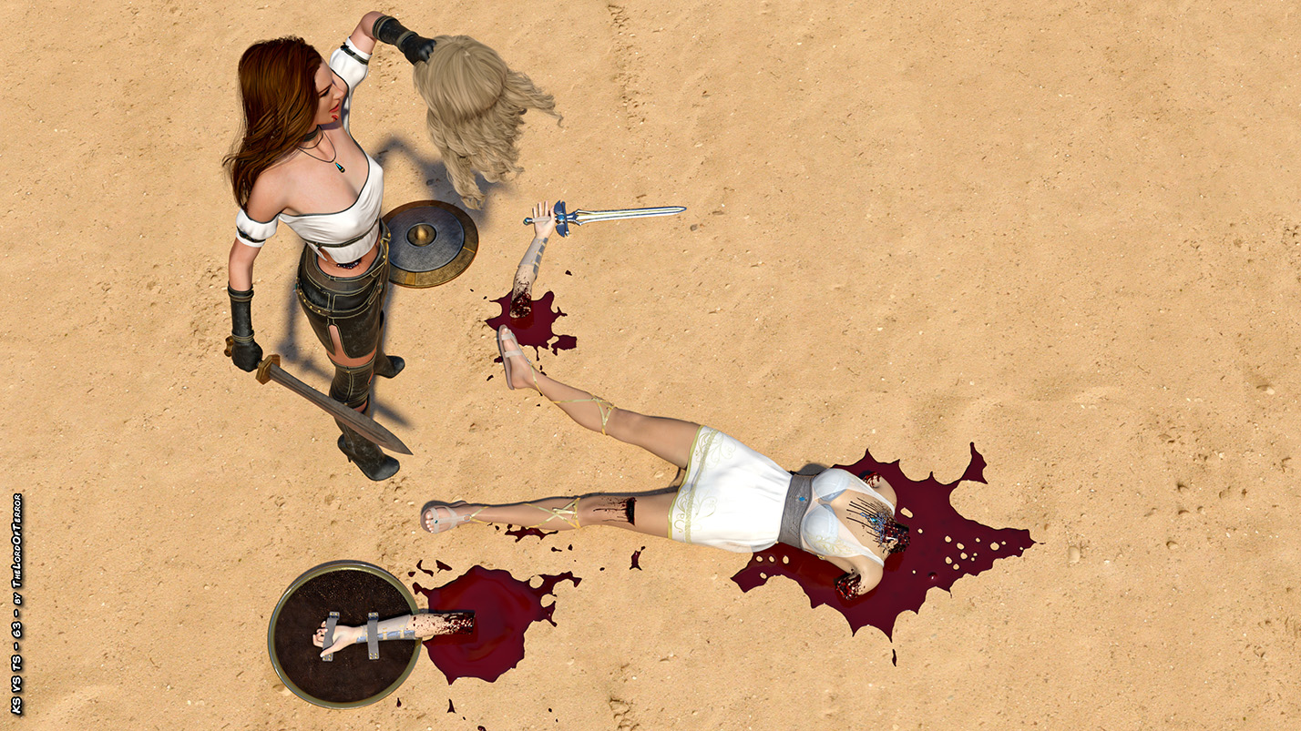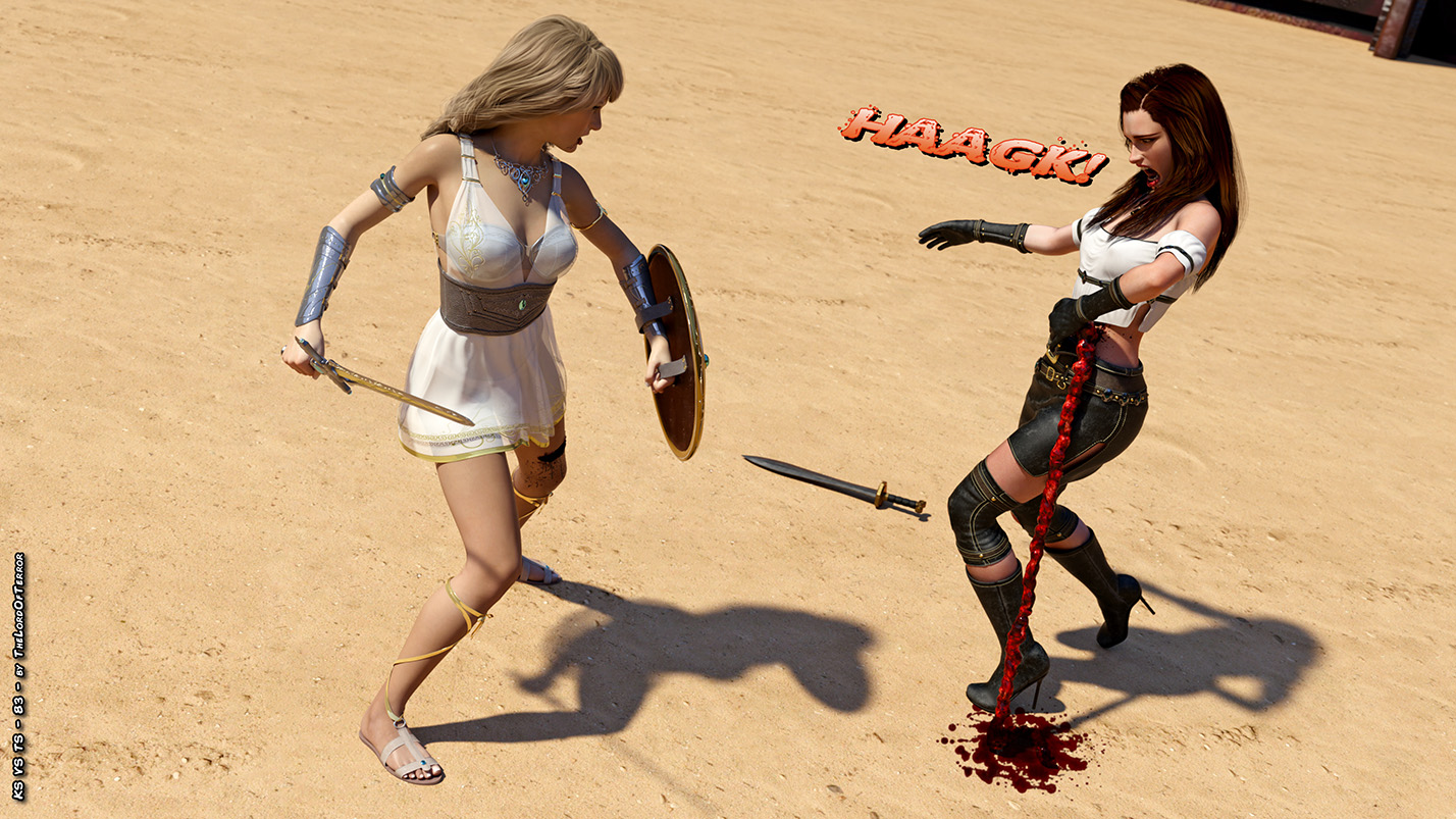 The arena still wants blood, and it will get plenty in this fight between two fierce fighters! Their blades are very sharp and there will be plenty of blood spilling and chopped body pieces! And this is valid for both fighters!