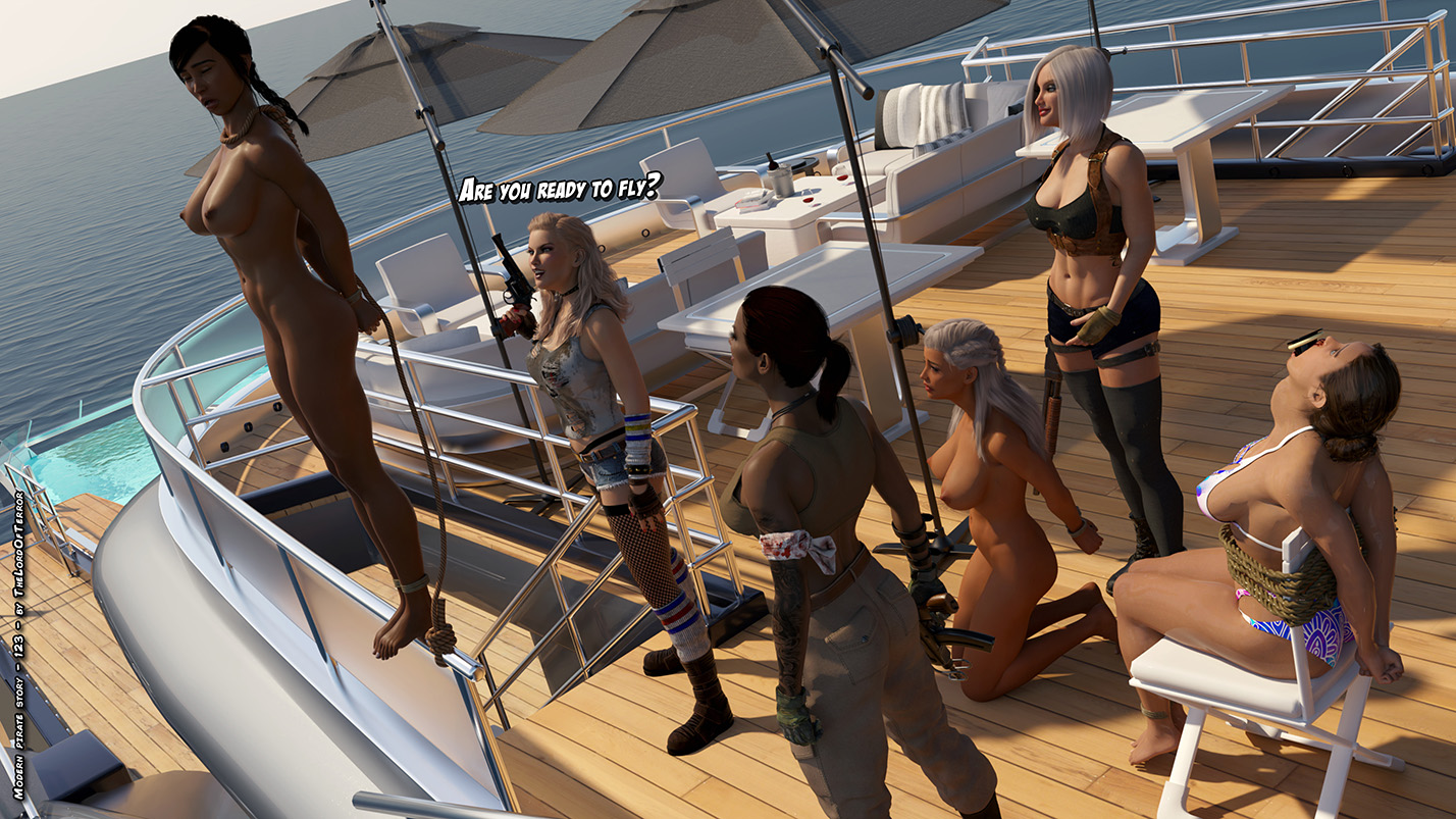 The nasty pirates go on with the torture until it works, so they know where the jewels are… but they won’t let go the hostages! One will be hanged on the side of the boat, the others will be drowned in the pool… one with an extra hole in the head!