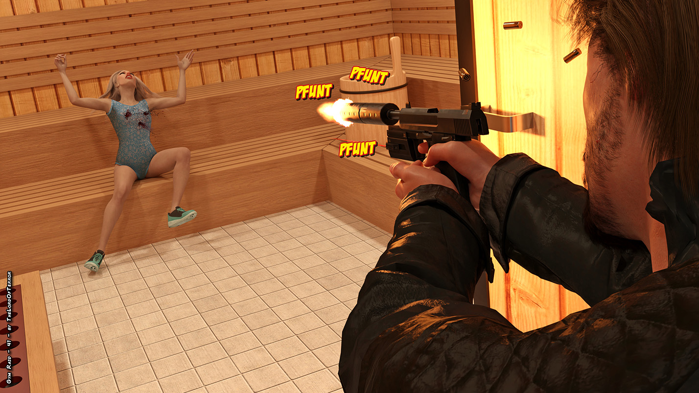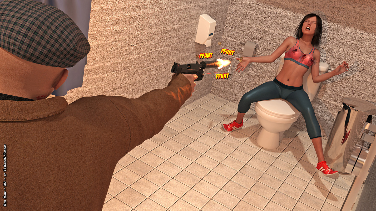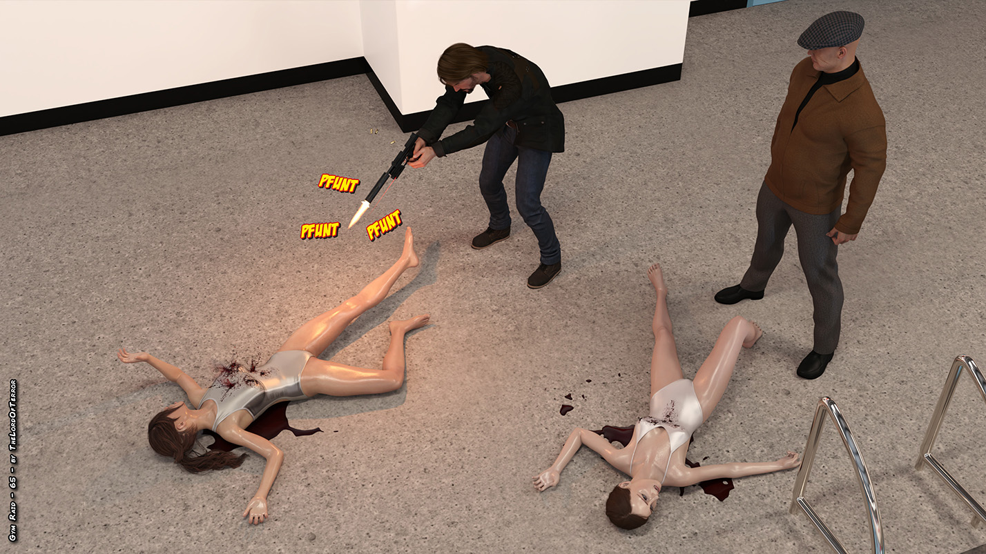 Two killers are sent to take care of the girls in a gym… the 6 victims will be shot with silenced guns, with some extra shots to be sure that they are eliminated!
