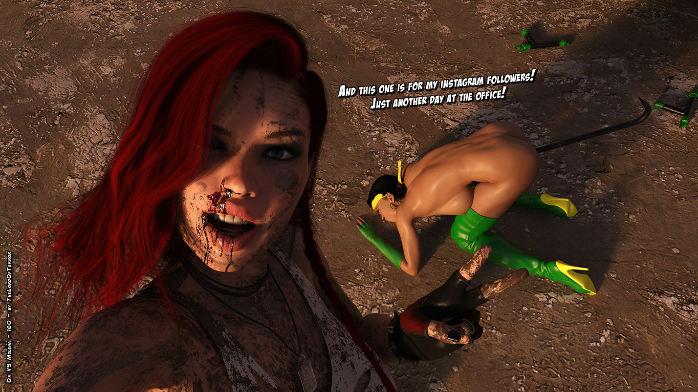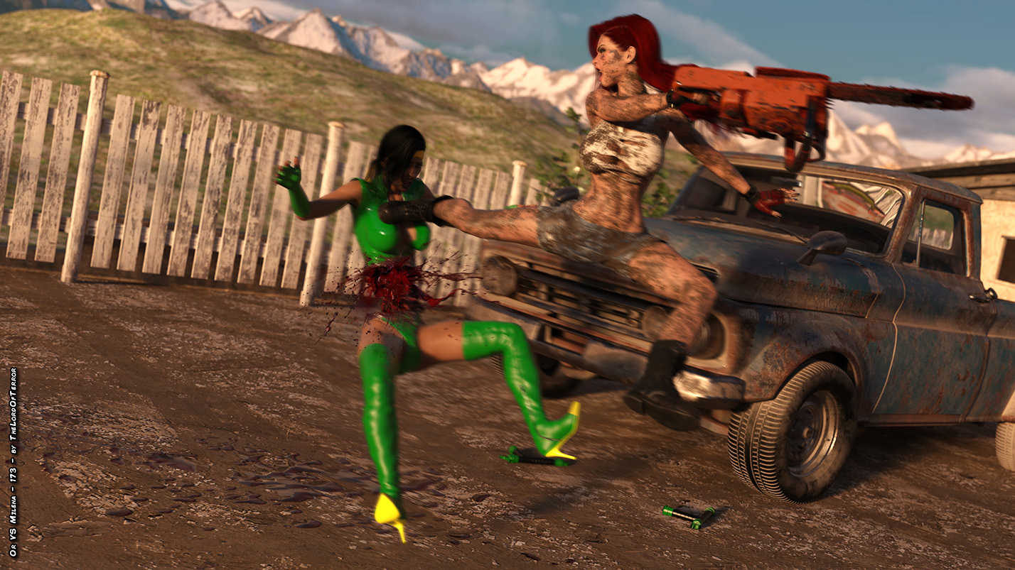 The first round has been won by special agent “OR”, but now Milena wants her revenge… 3 times! One with a crowbar, the second with a bloody chainsaw, then using “OR” electrified weapons, placing them in some “special” holes… then driving over her with a pickup!