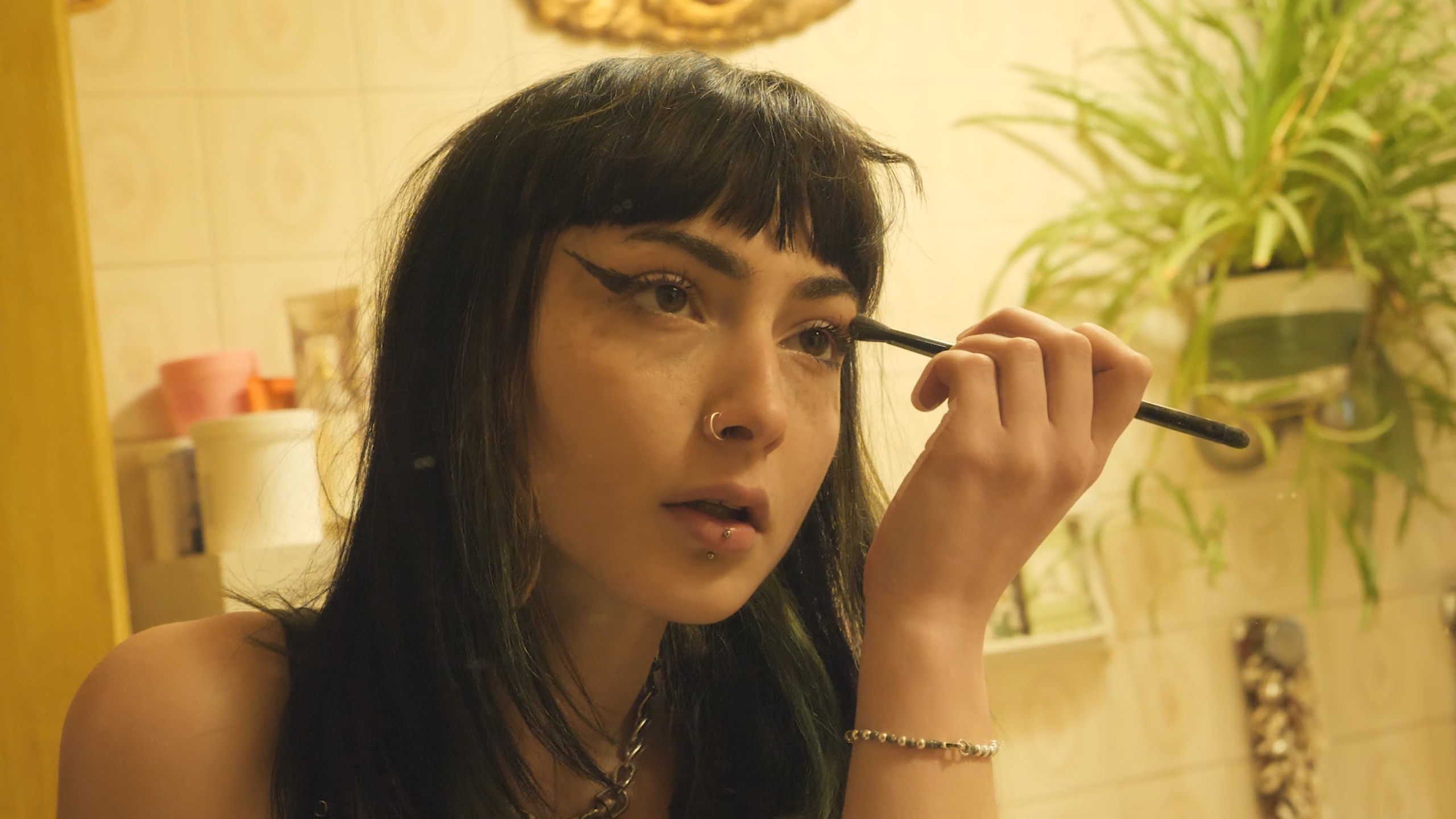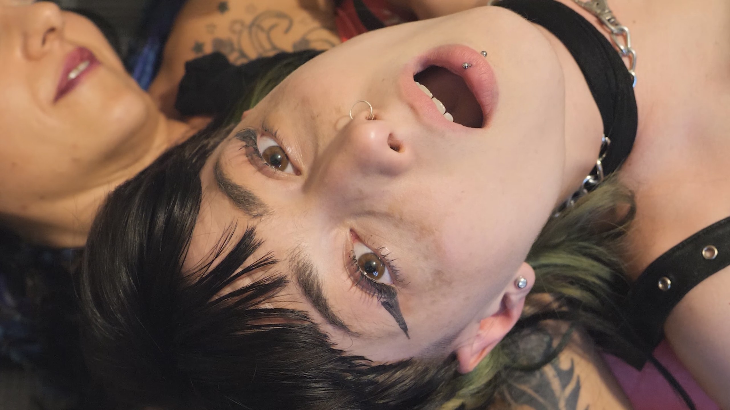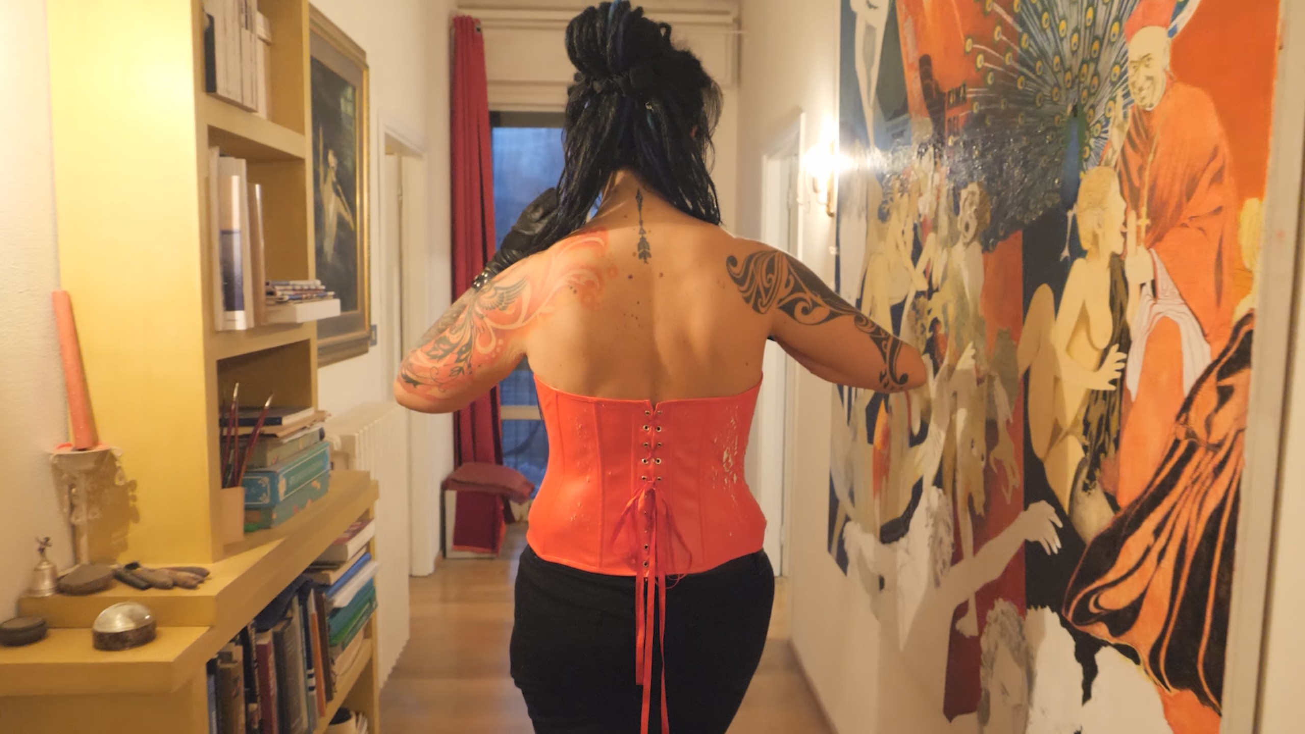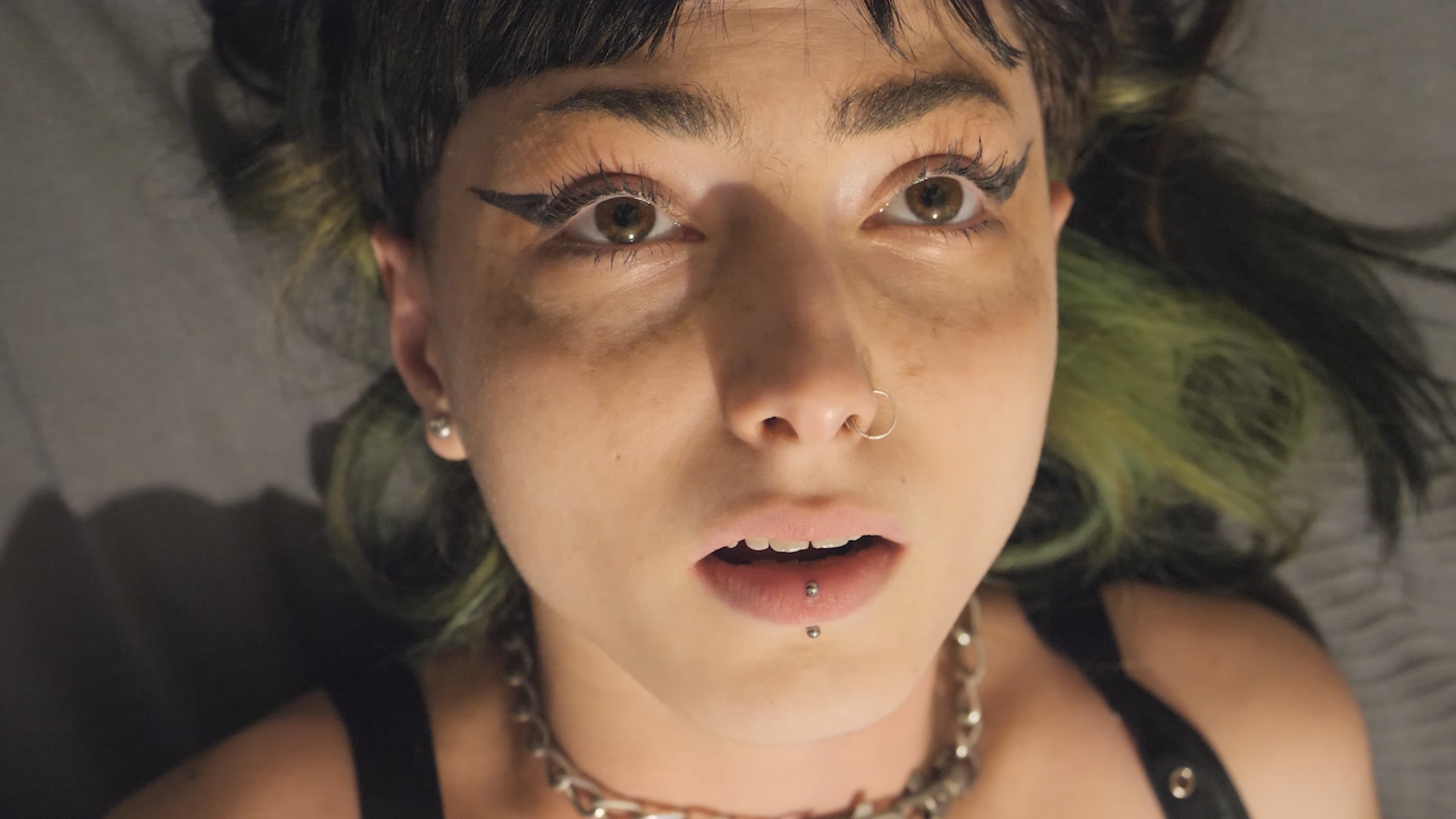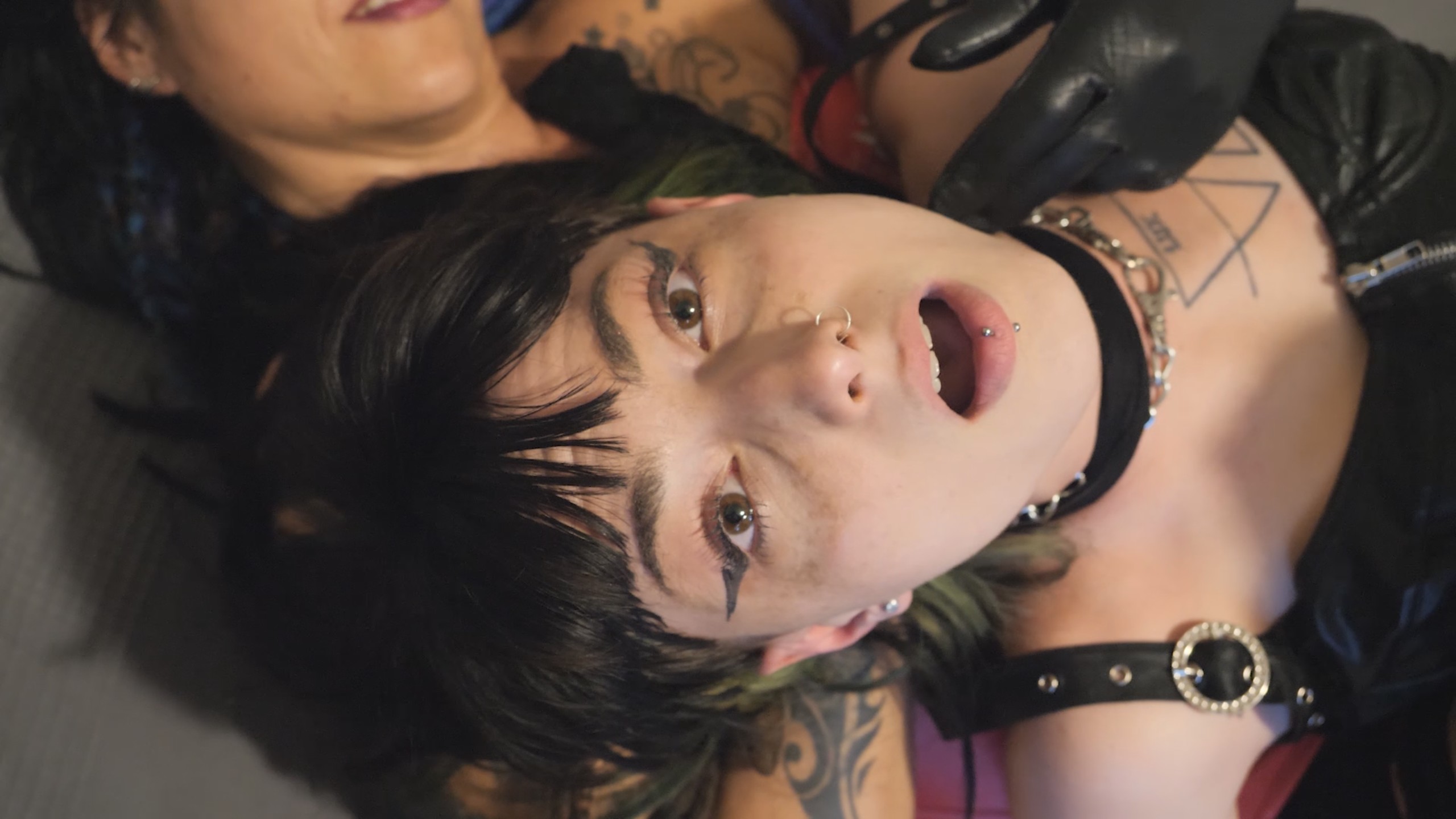Desi is getting ready to go out, she does her makeup in the bathroom, then she dresses up putting on her skirt and stockings, when suddenly a female assasin breaks in and strangle her with a stocking. They both fight and fall on the bed; Desi struggles some time but her strenght fades away. When the killer is sure that her target is gone, she plays a bit with her body, moving her limbs, kissing and touching her body before leaving the room.