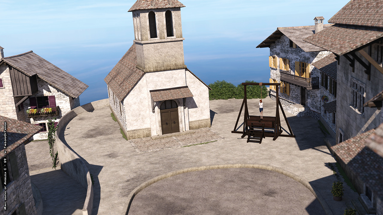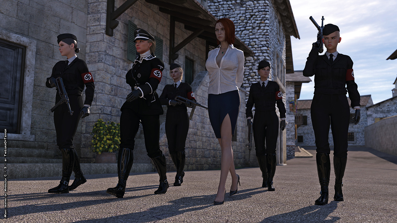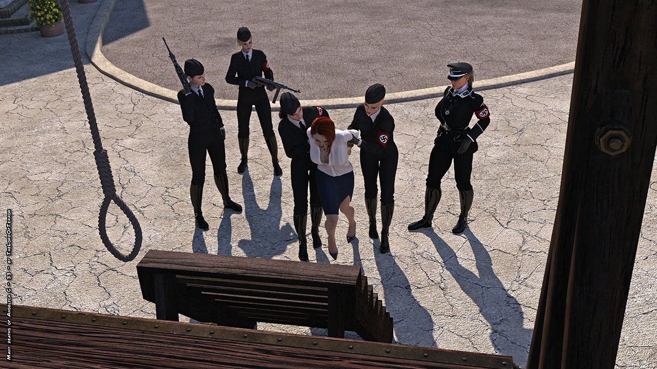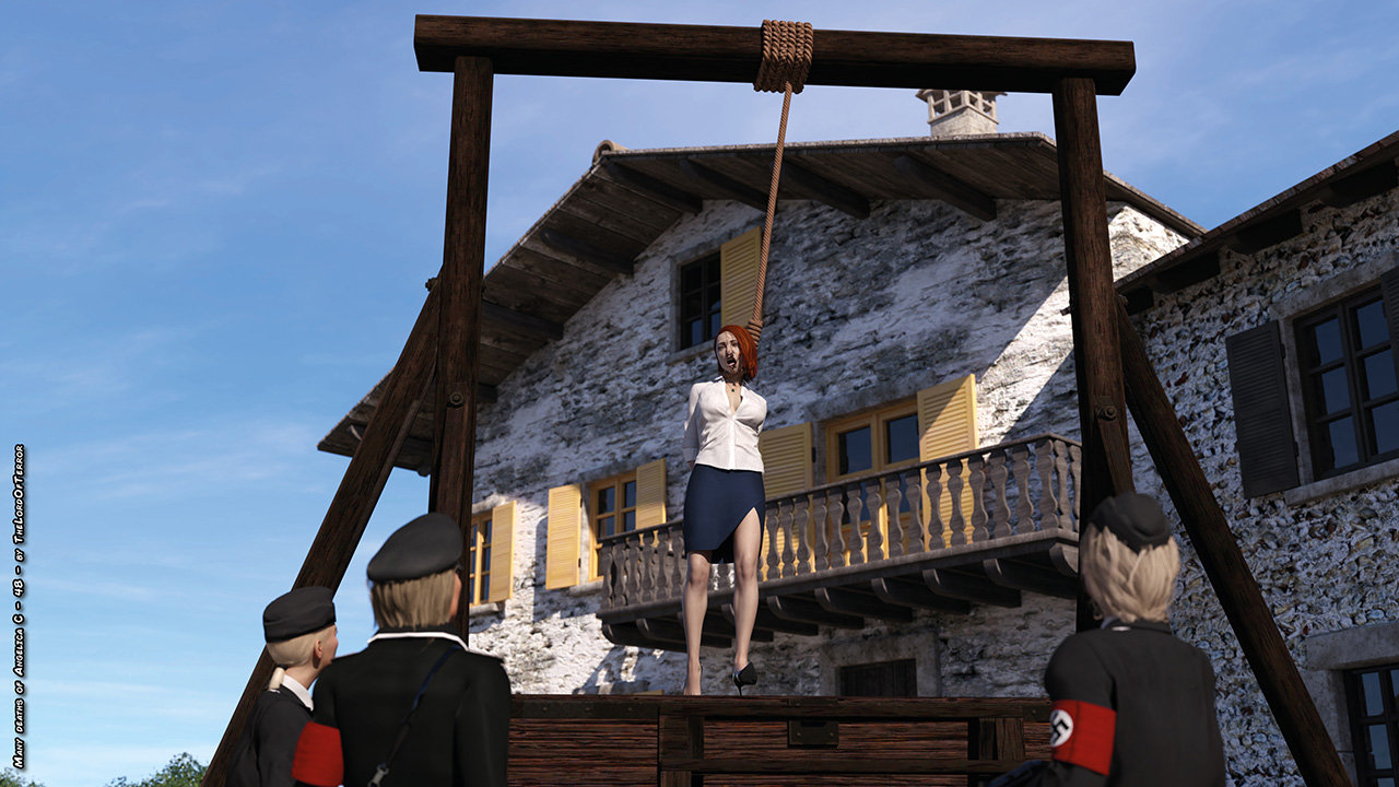 Angelica the partisan leader is captured by the nazis and she’s brutally beaten with punches and kicks, then she’s taken to the gallow for the hanging execution and left there swinging! The whole scene is available both dressed and naked.