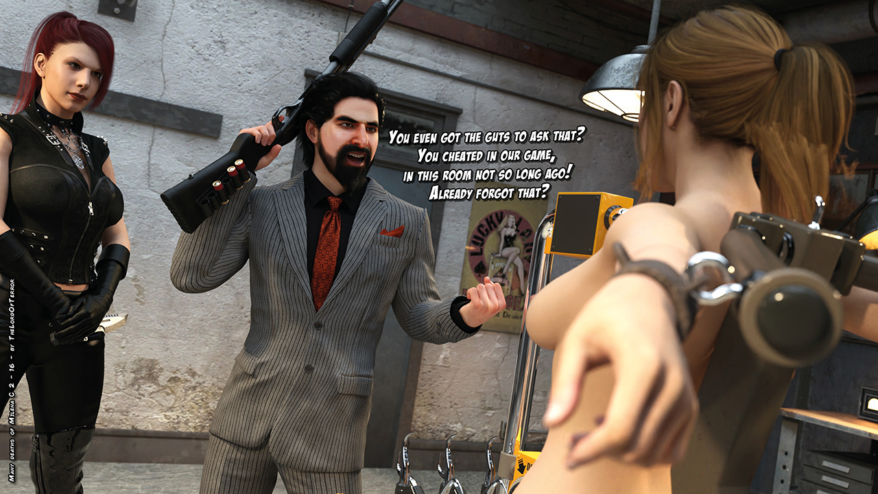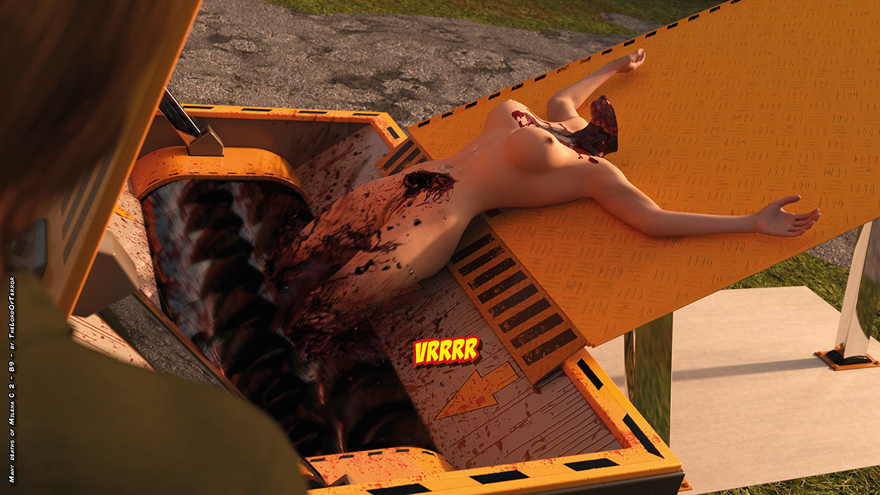 The unknown girl cheated and won the russian roulette game, but the owners of the place don’t like cheaters, so they kidnap her and attach her to a machine that will slowly eviscerate her, Then her head will be blasted with a shotgun shot. Later the janitor will play with her body and take it to the meat factory!