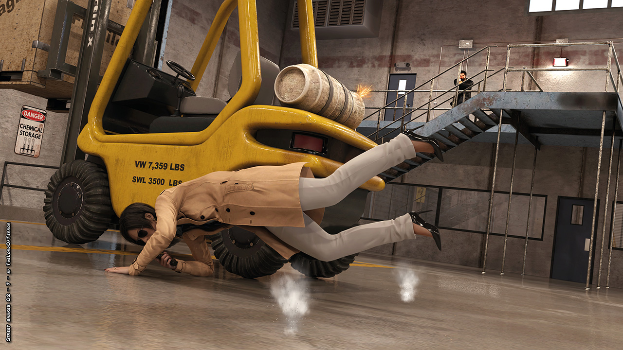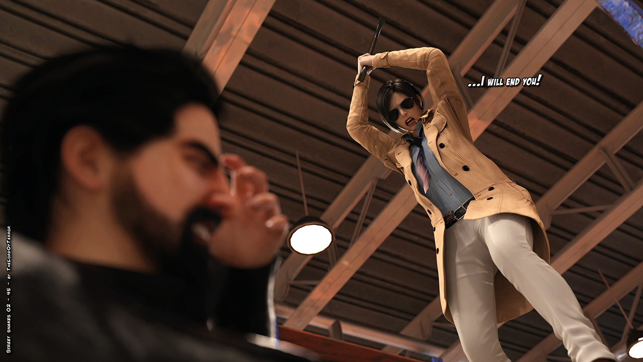 Manny is chasing the corrupt detective inside a warehouse, after a rough fight he tries to get some info and then he kills her. Once out Milena is disappeared; she’s been captured and forced to fight inside the arena against a tough fighter…
