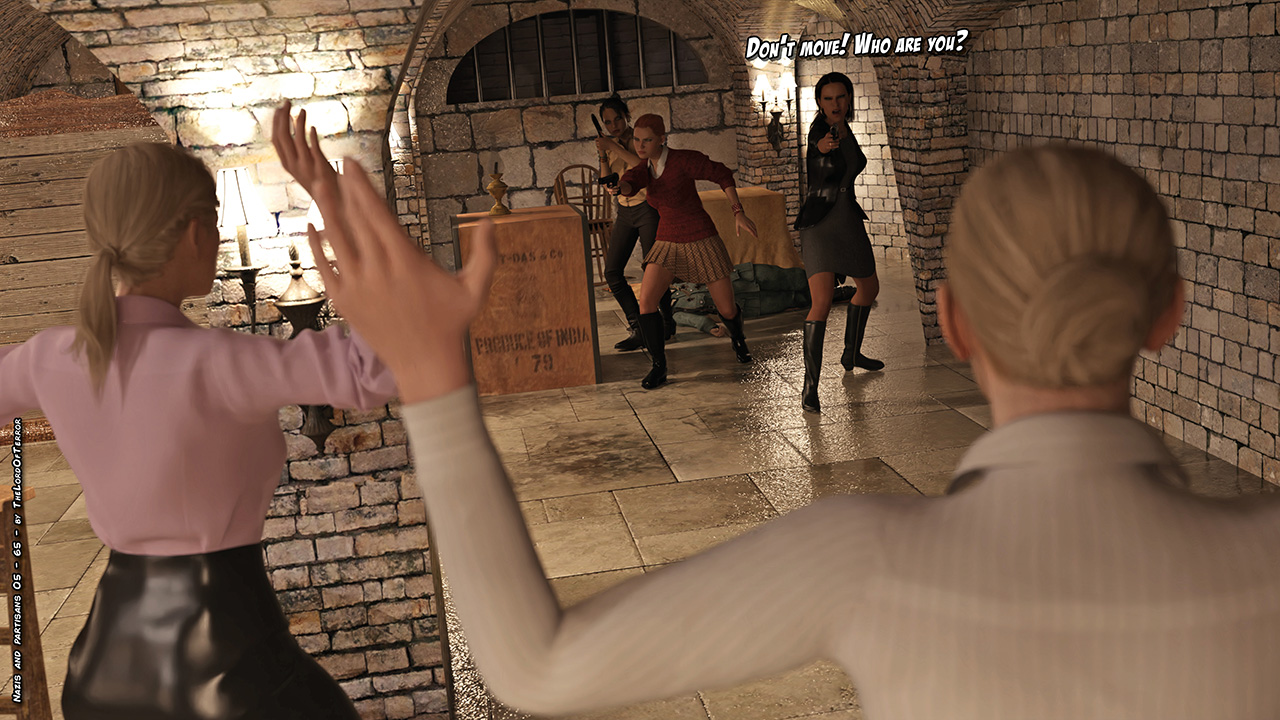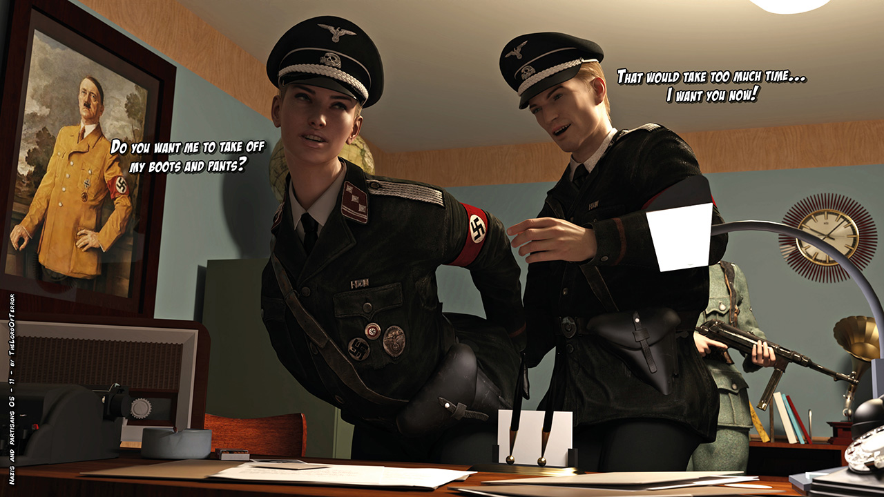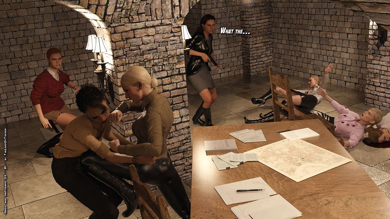 The partisan spy has been discovered and eliminated. The nazi officer reports to her general and they spend some time together. After that the nazi squad is sent undercover to the partisan hideout, hoping to get more informations, but not everything will go as they planned….