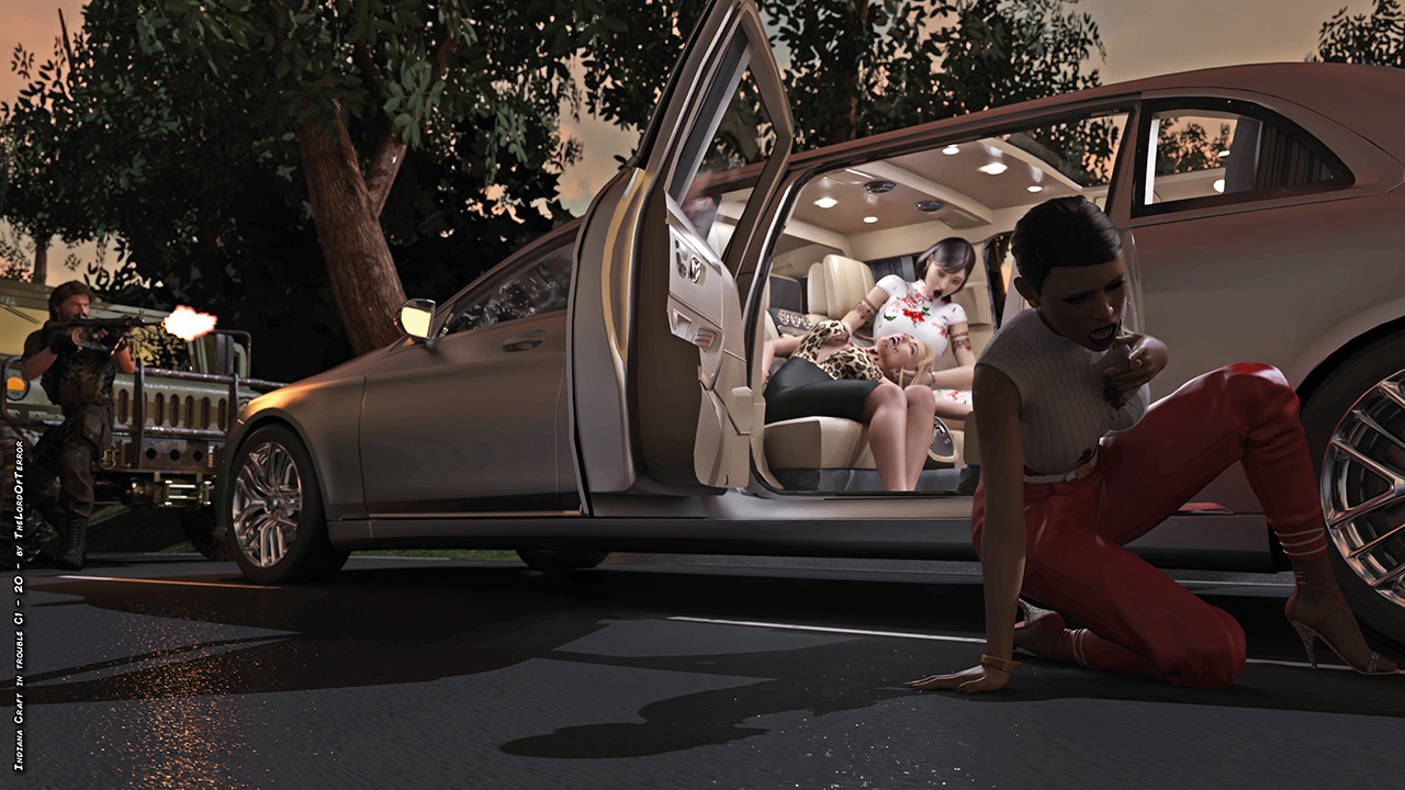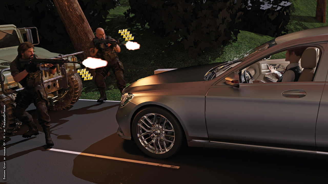 Two mercenaries ambush a limo that’s carrying four rich women: the driver and three of these women are shot many times to make sure that they’re eliminated, while Indiana Craft is stunned and kidnapped.