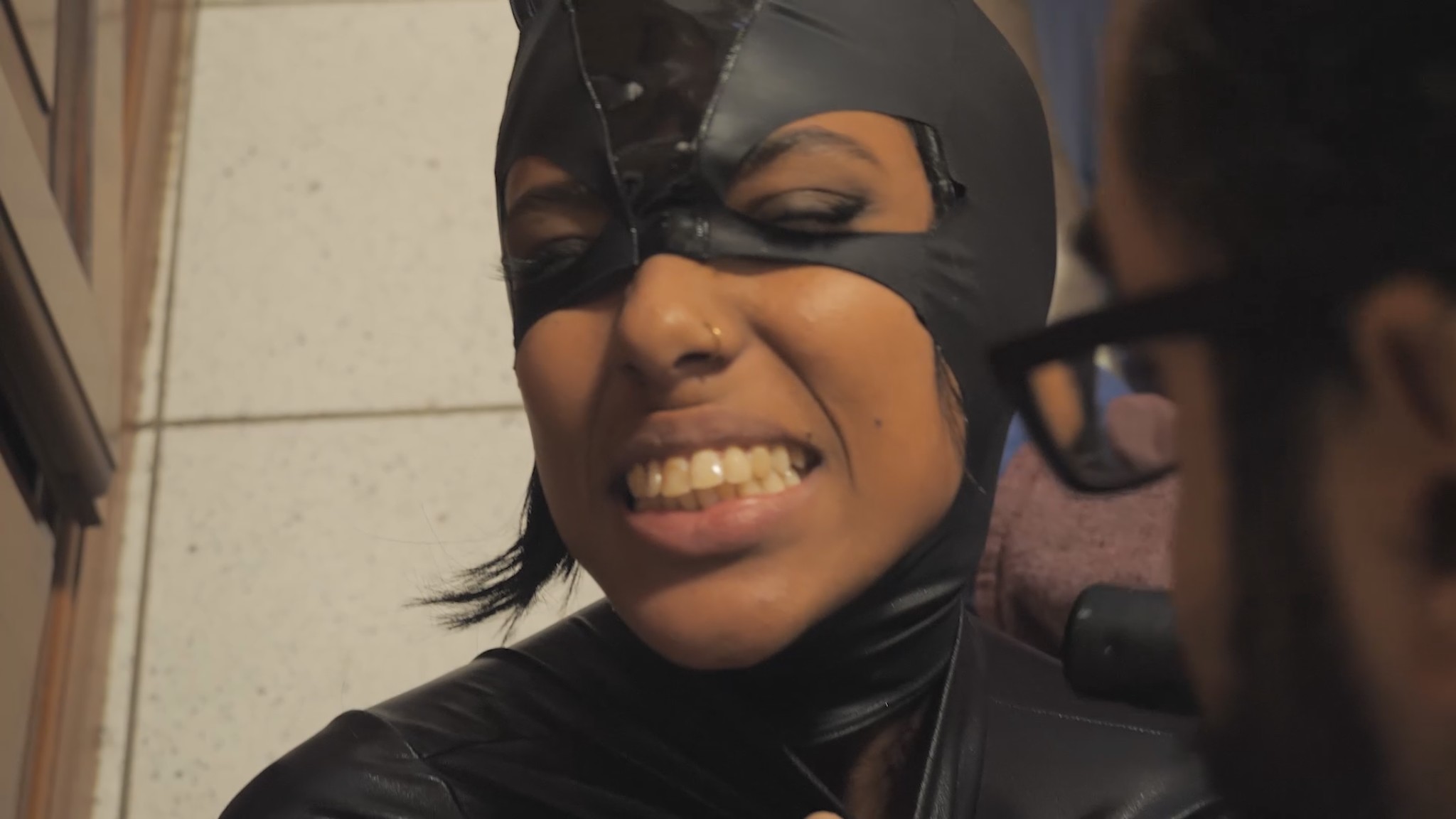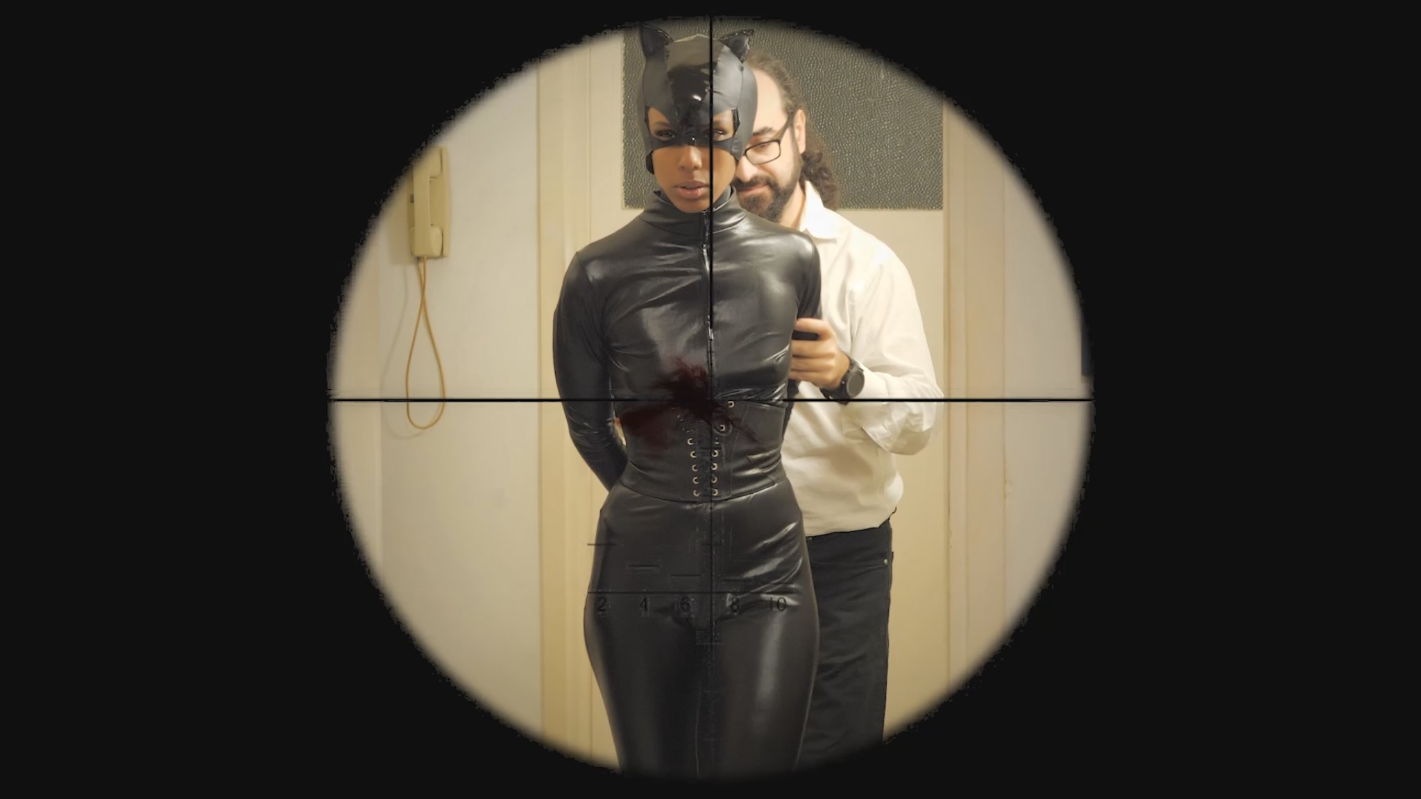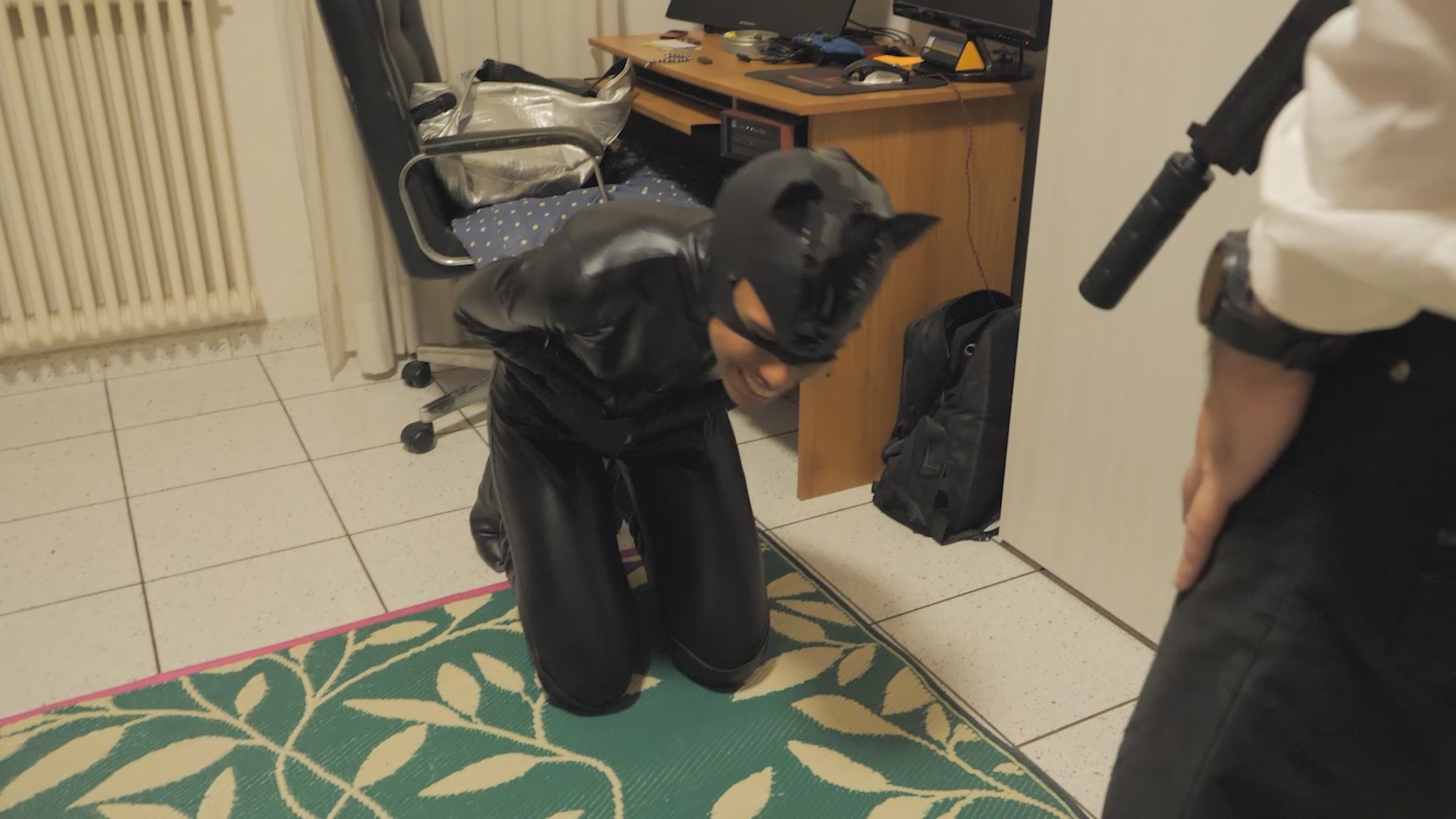 “Nine lives” movie featuring new actress Vanessa! She wears a sexy leather catsuit, acting like a sexy and deadly “cat”. She also wears a cat mask for some scene.