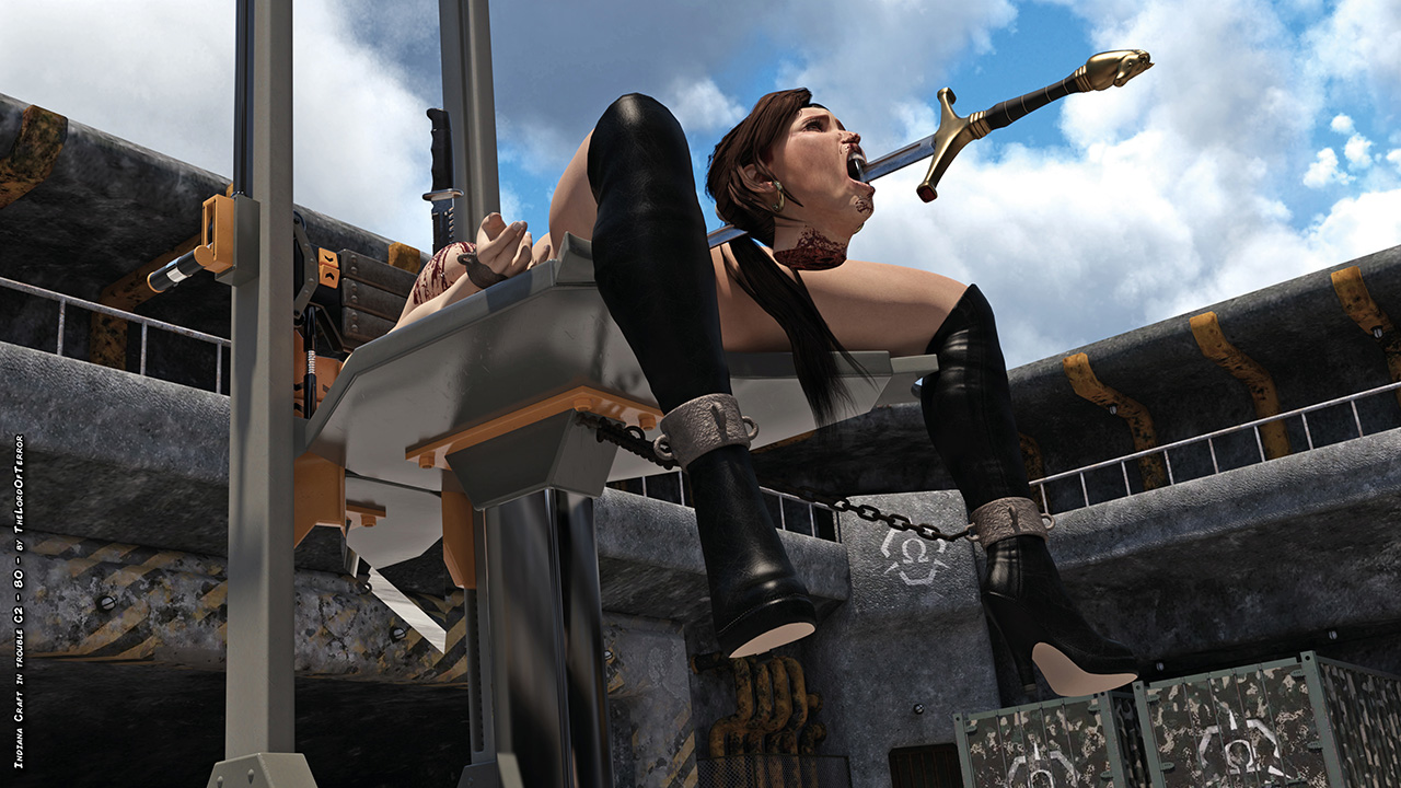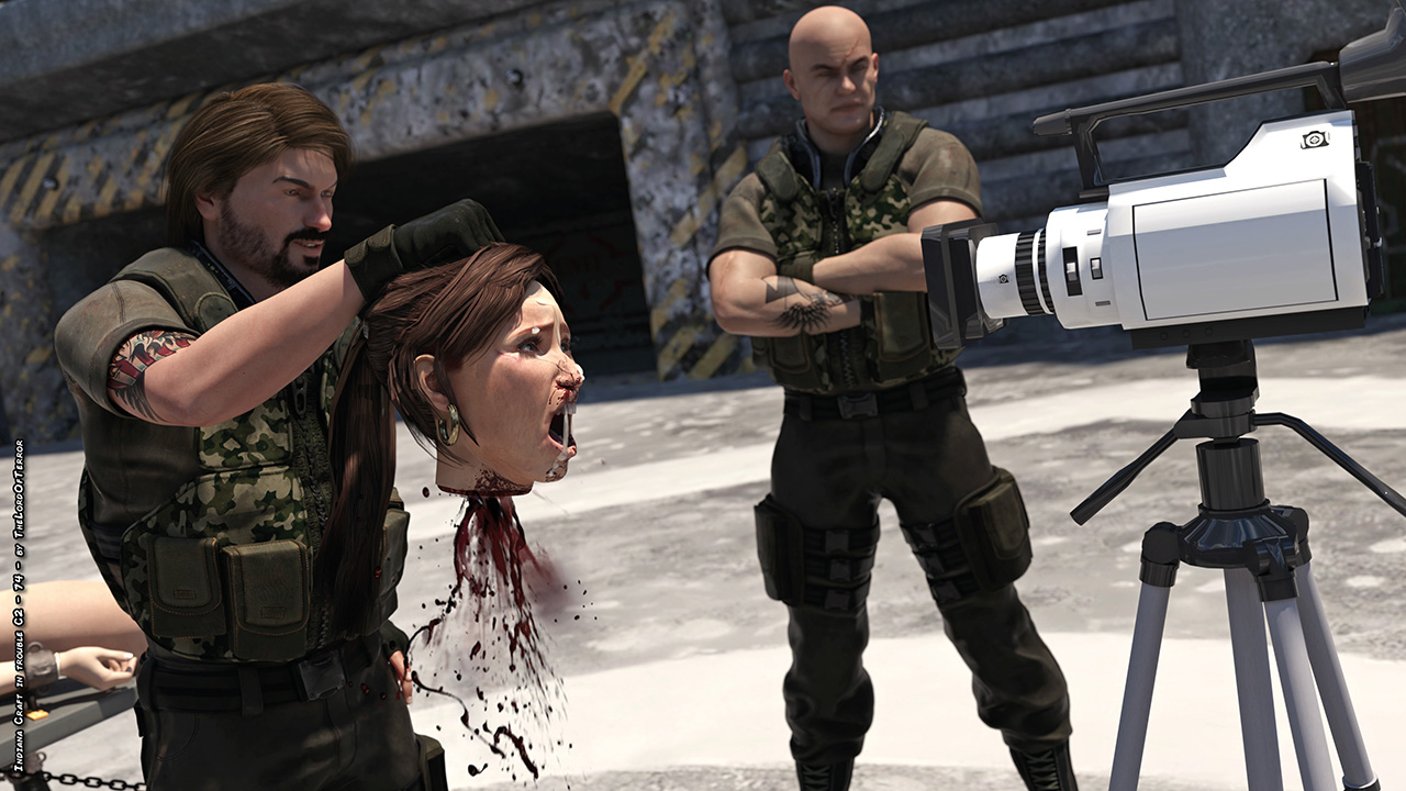 The two mercenaries managed to capture Indiana Craft alive, they tie her to a chair and beat her while recording everything. After that they will place her in a modern guillottine and spend some time with her before using the deadly machine!