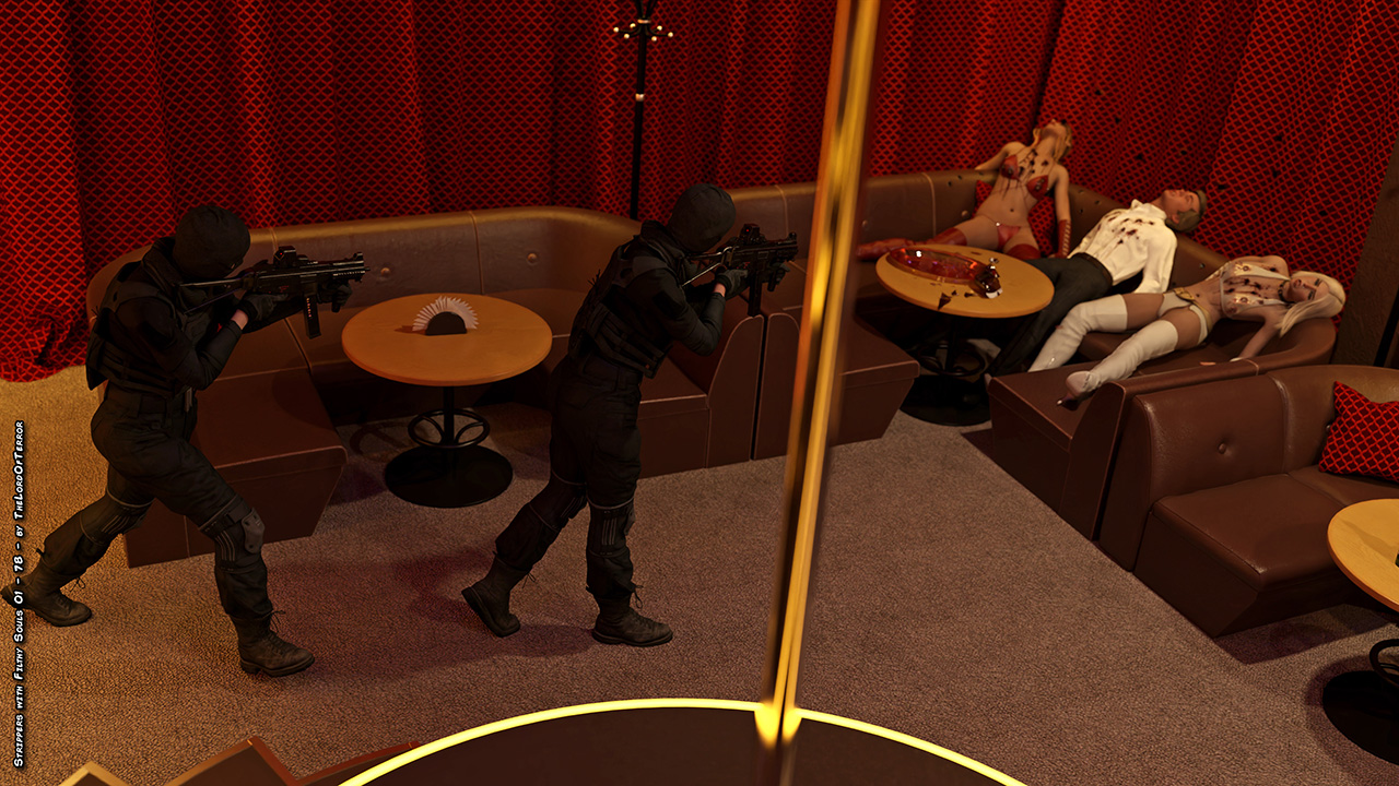 Stacey and Jade are two strippers and they make their usual show on the stage. After the show they sit with a rich guy, hoping to spill some money from him, but two armed agents enter the place to kill the rich guy, but they will hit the girls as well along the main target.