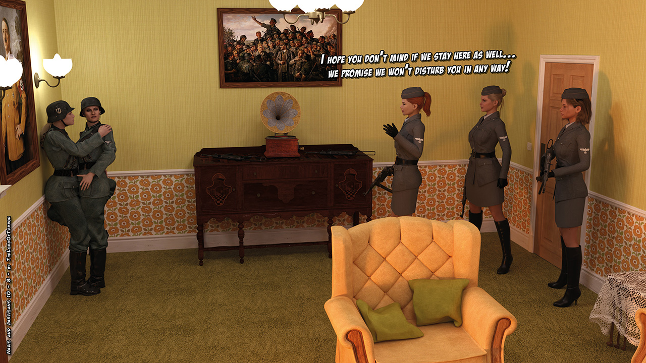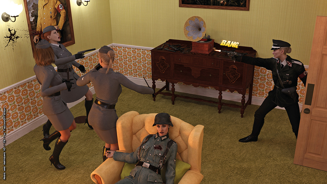 The three disguised partisans proceed with their plan but they find two troopers in the room they need, so they decide to take care of them. But before they could finish their plan the officer will enter the room questioning them and calling for backup to join the party…