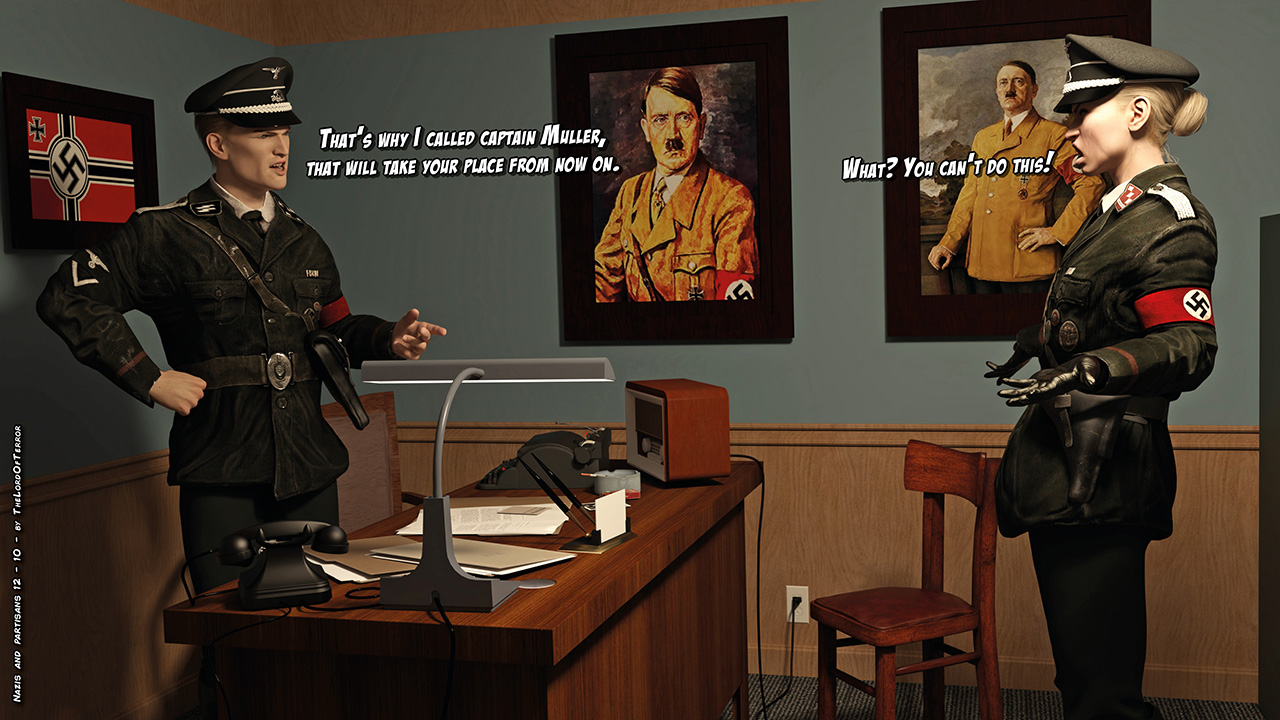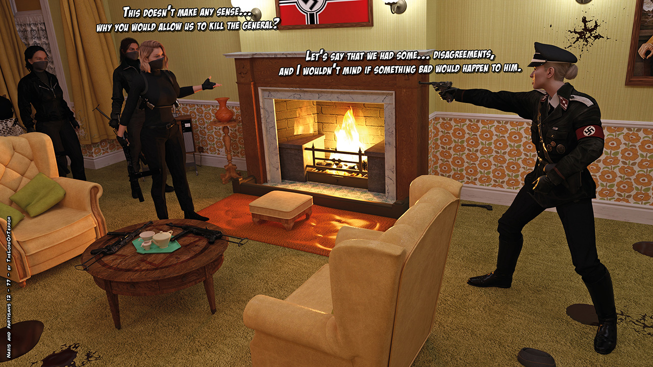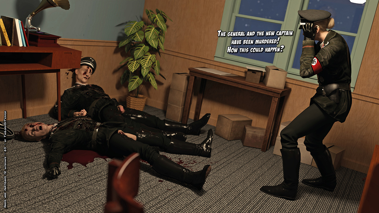 The general is very angry against the captain because of the infiltrated partisans, so he’s going to replace her with another captain. They spend some time close together, while the first captain goes back to the room where she found the partisans asking herself what they were doing there…