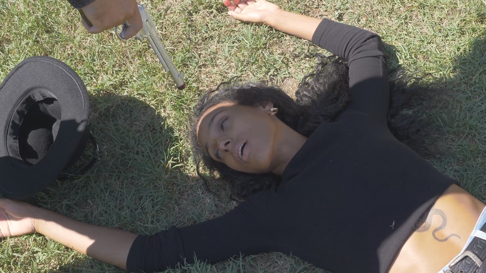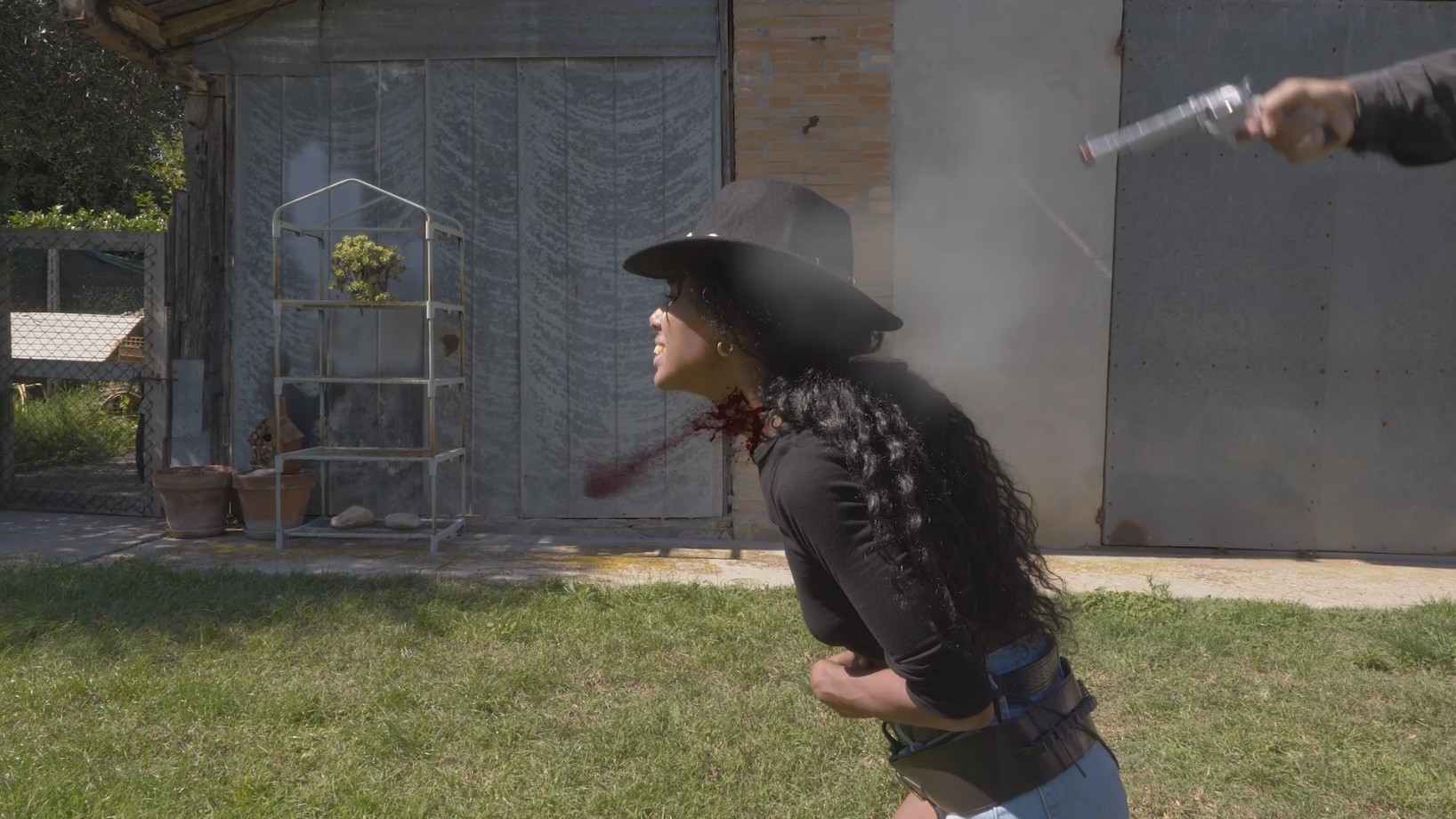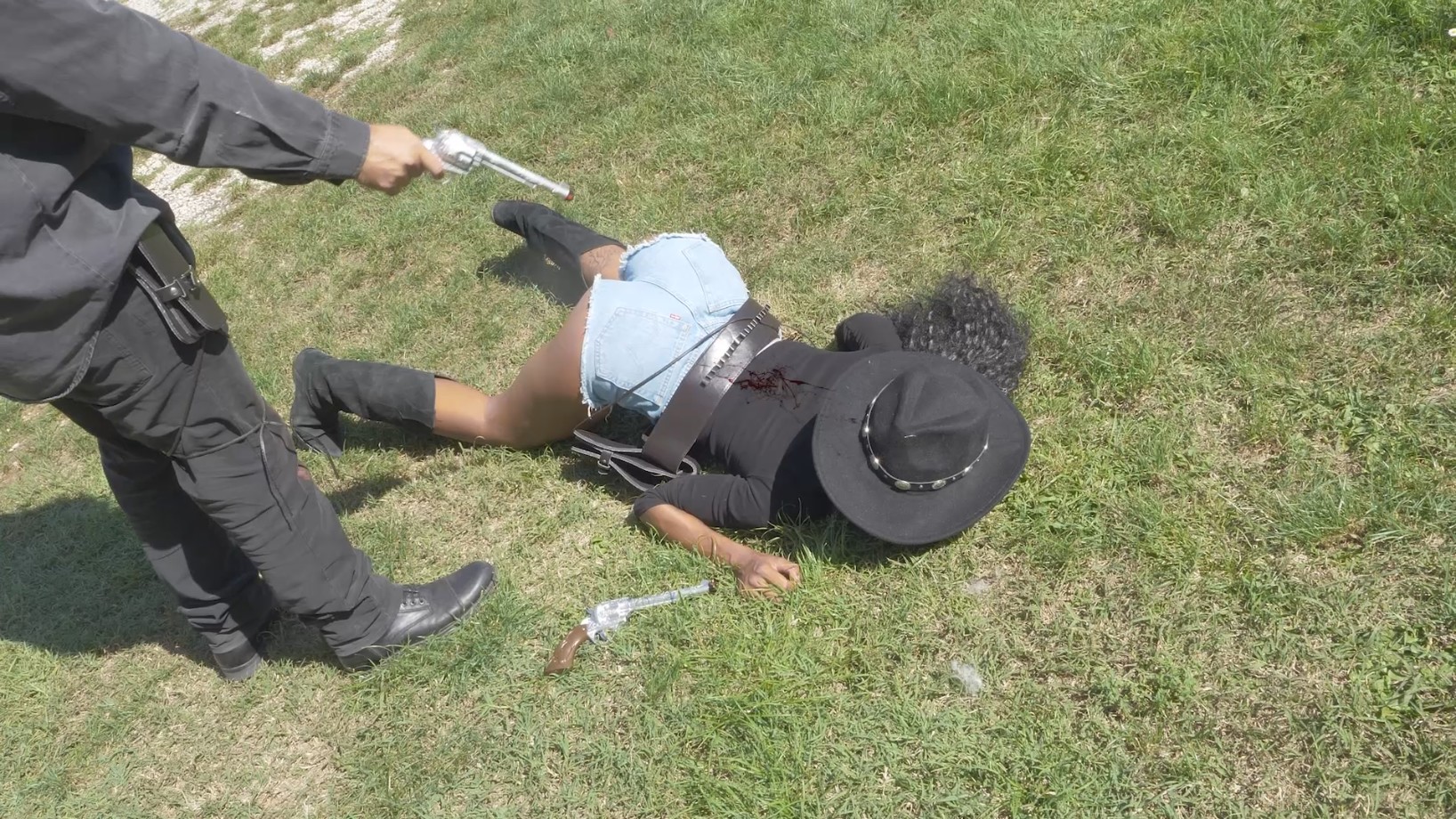 Vanessa doesn’t stand a chance in all the 6 duels, getting shot a lot of times and always ending up dead on the ground with her eyes rolled up!