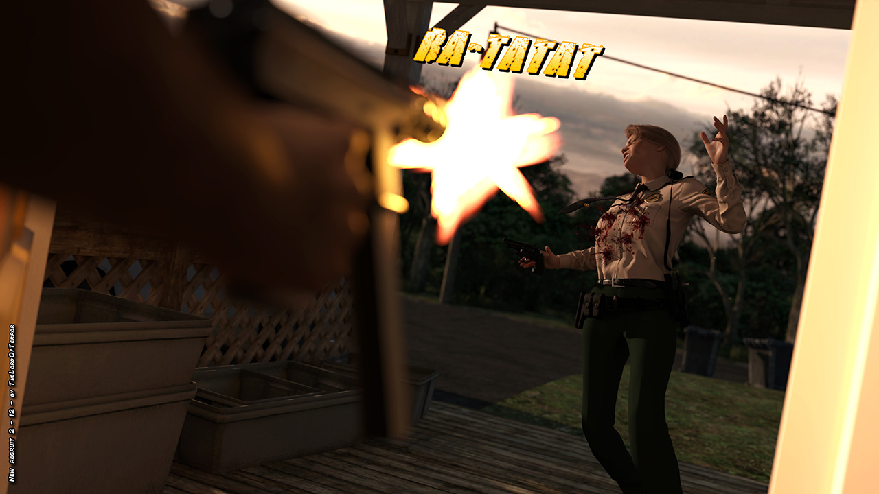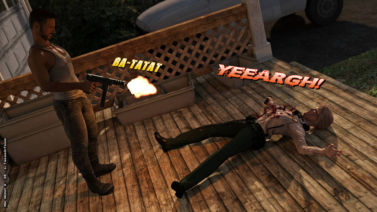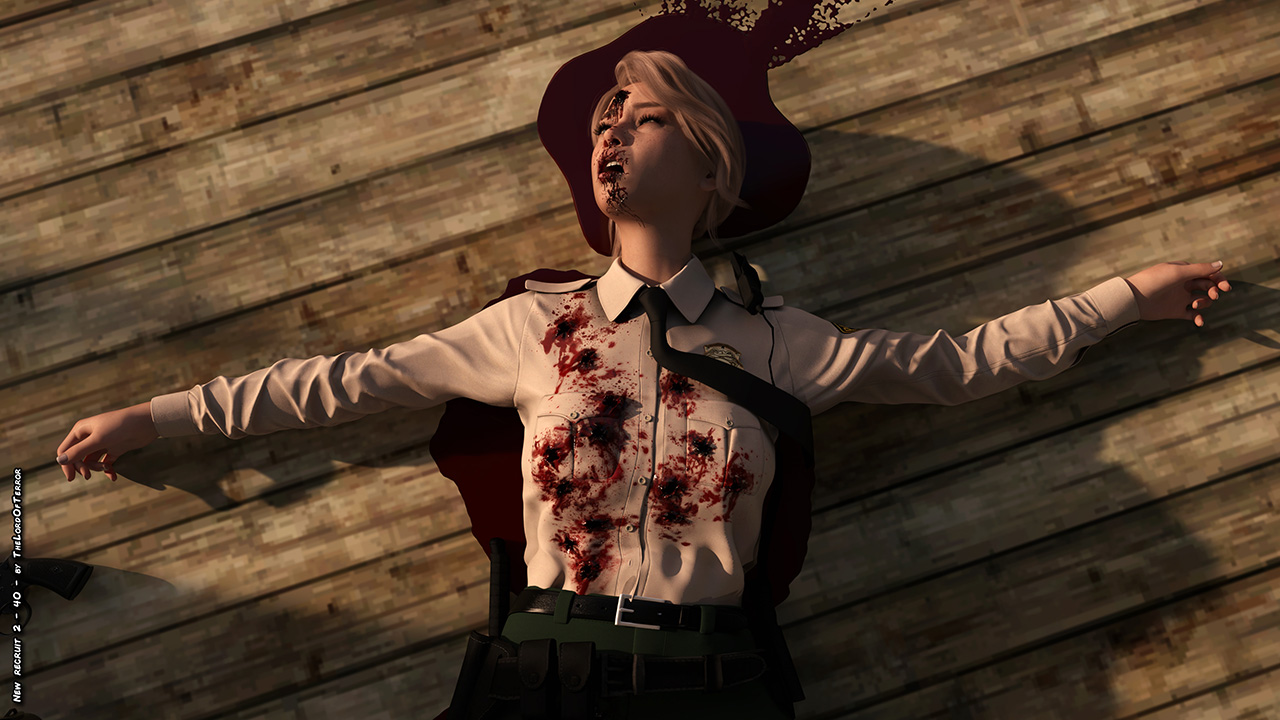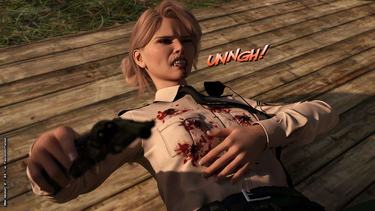 A rookie sheriff is treated badly by her colleagues, who think she’s not cut out for the job, so she wants to prove she’s capable and arrest a suspect on her own. But her inexperience will cost her dearly… alternate version featuring machinegunning and full necro sex scene!