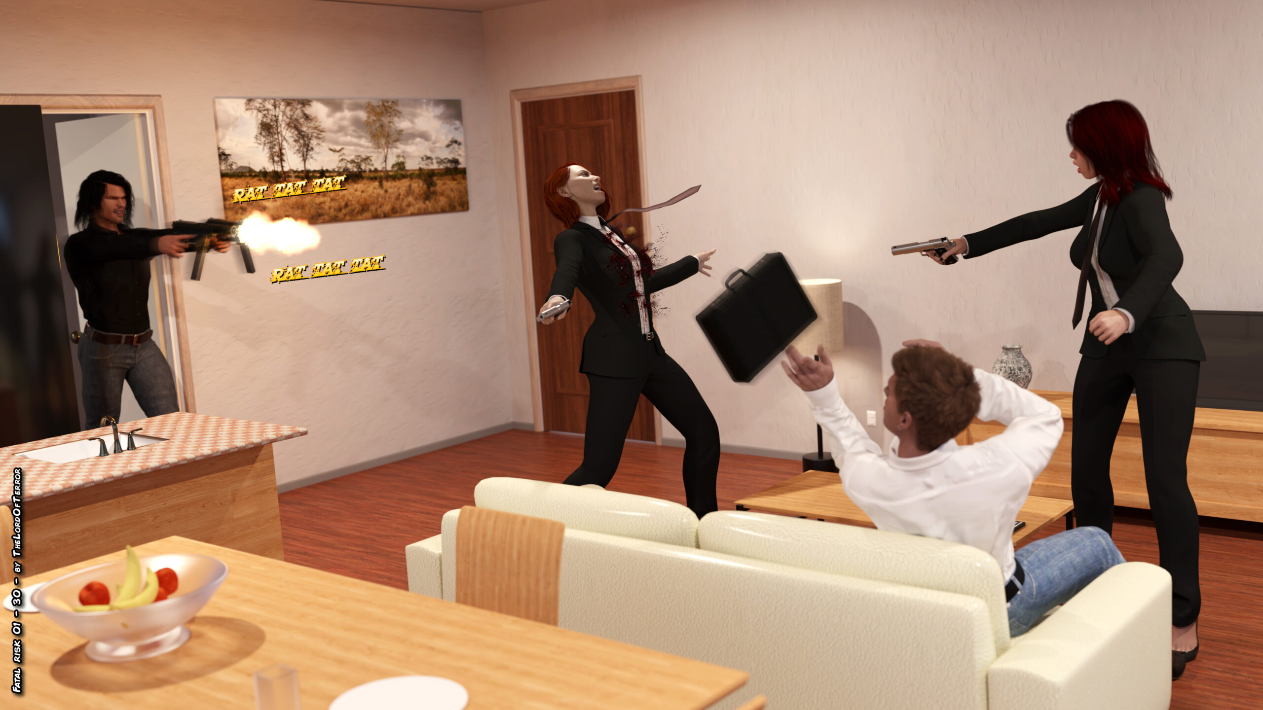 Two female killers want to take the misterious suitcase from two male criminals. Before they could manage to kill them, the two killers are shot many times and the two males decide to have some fun with the after that.
