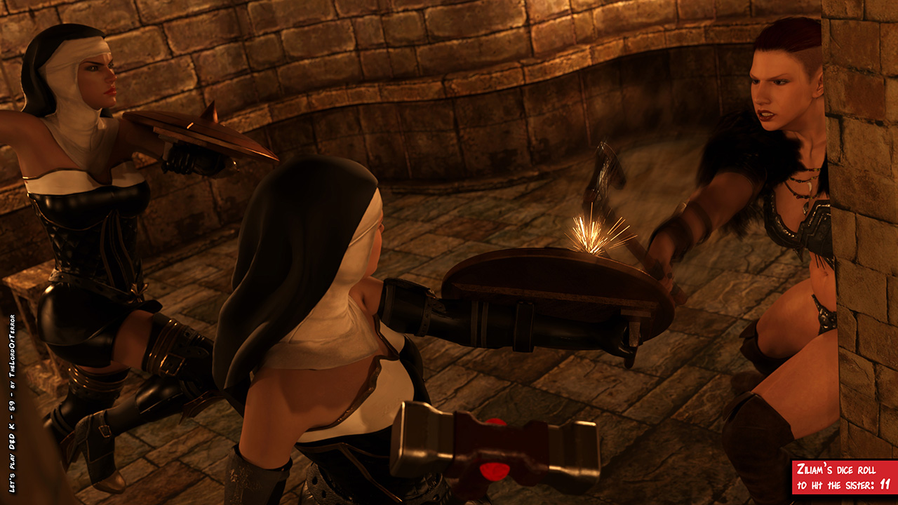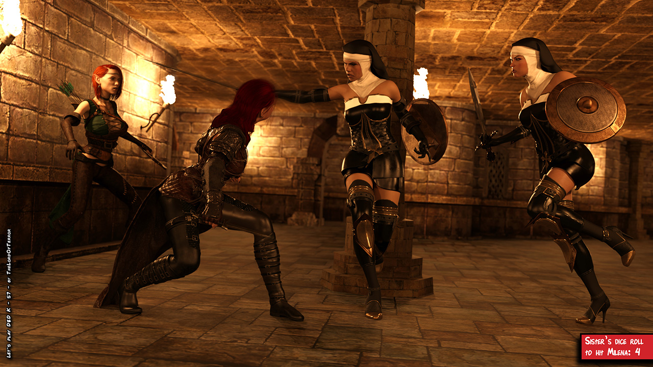 After the troubles with the traps, the party goes deep underground and they are attacked by a group of white sun sisters! They will fight them with magic, swords, axes and arrows… if the dices will allow that!