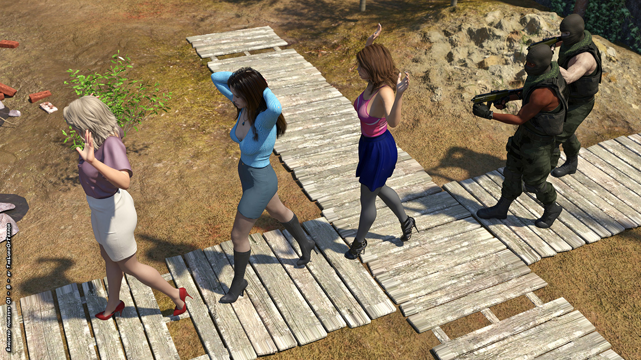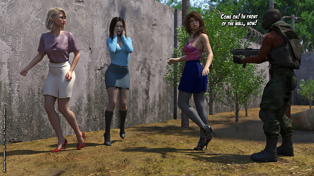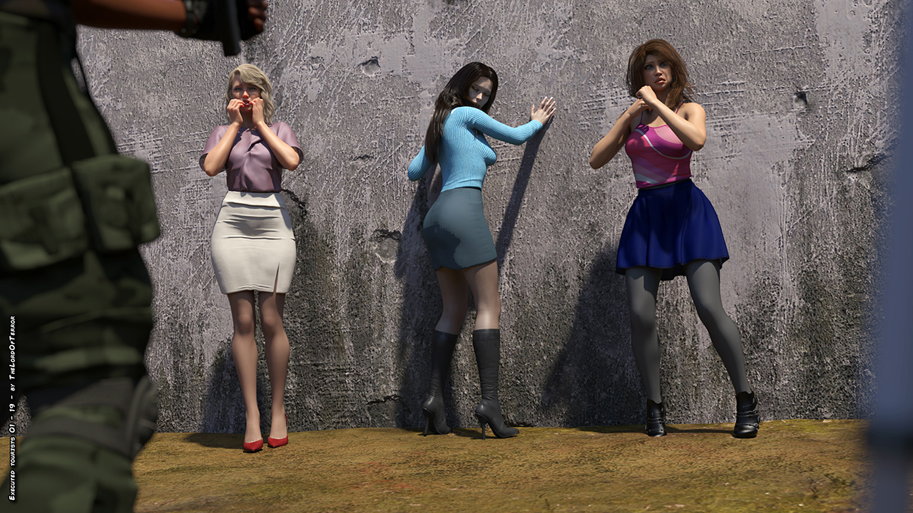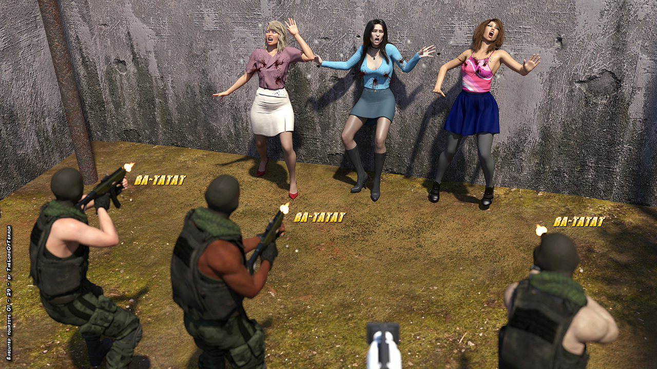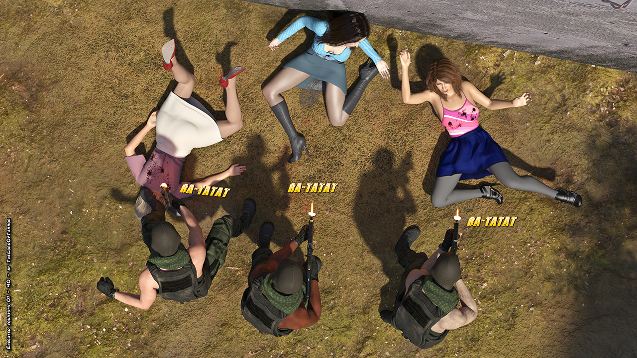 A group of tourists have been kidnapped and a ransom has been asked for their lives. Since their government refused, the terrorists will bring three of them to the execution wall and record them while they get machinegunned, stabbed and fucked.
